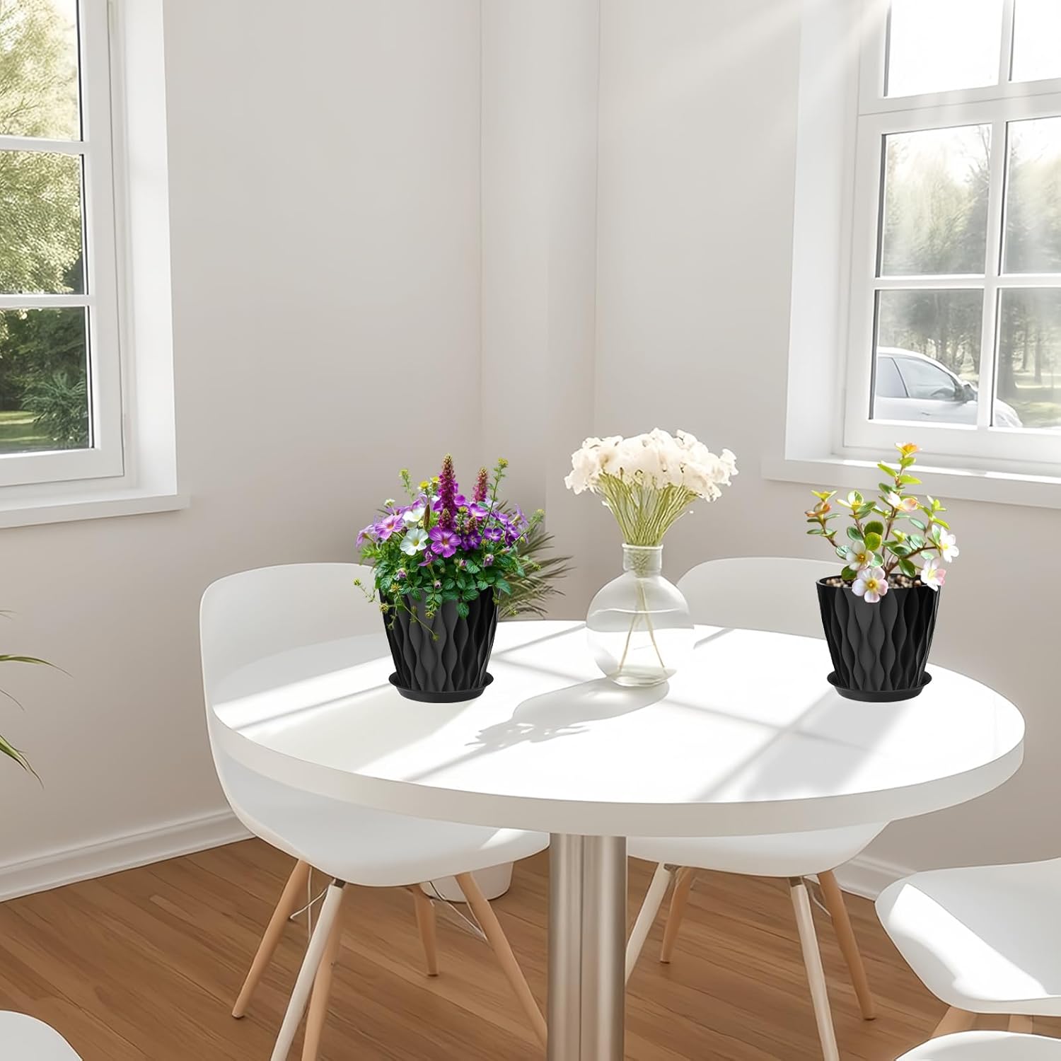 - š§ Optimal Plant Health with Drainage & Saucers: Each pot features essential drainage holes to prevent root rot, paired with matching saucers to catch excess water and protect your surfaces. Enjoy worry-free watering!