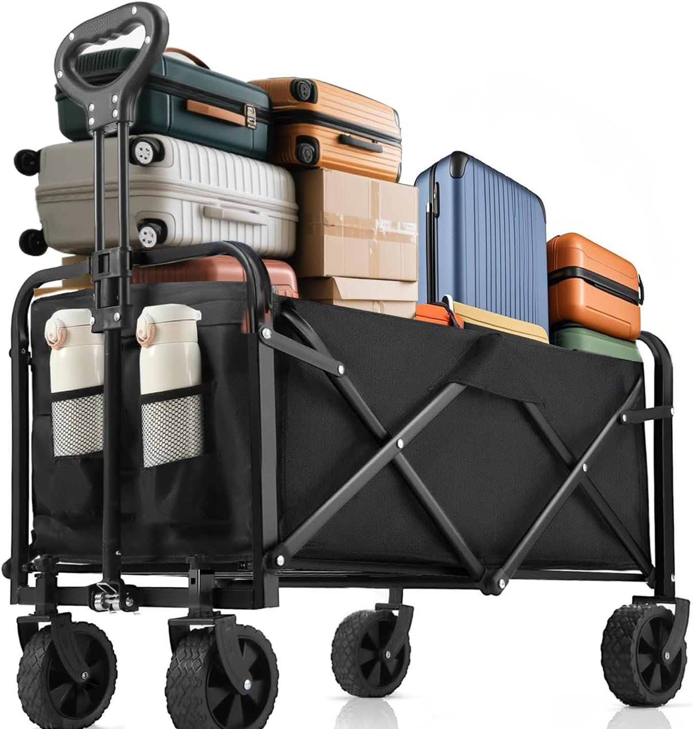 - 【Removable All Terrain Wheels】: This grocery cart on wheels is equipped with four detachable all-terrain wheels, including two front wheels that rotate 360° to easily move across different terrains. The collapsible wagon with wheels is ideal for transporting groceries, shopping, gardening, camping, outdoor sports, traveling.