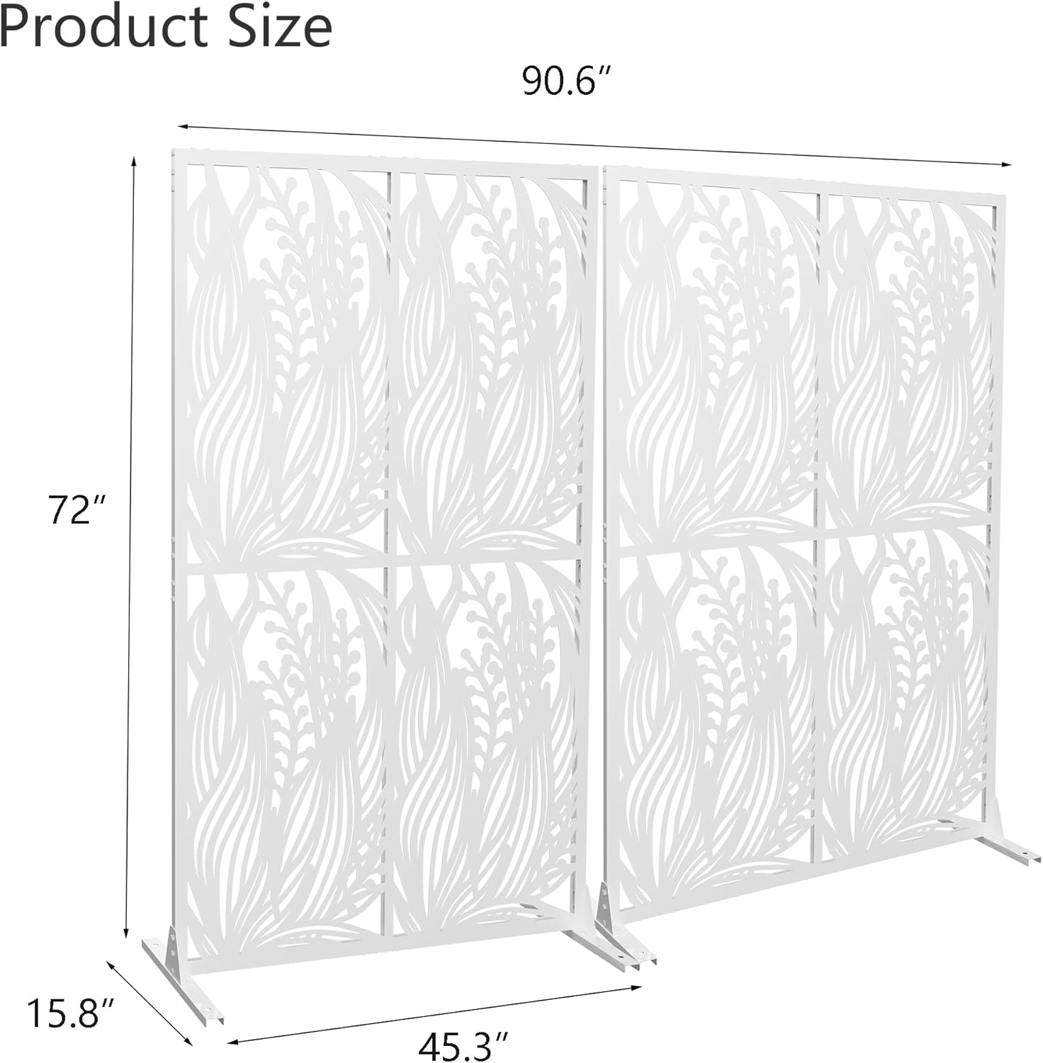 - 2 Pack Metal Privacy Screen: Single large freestanding privacy screen 72" H x 45.3" W, the feet width is 15.8’’.The 2 pack metal privacy screens can be used together or separately.