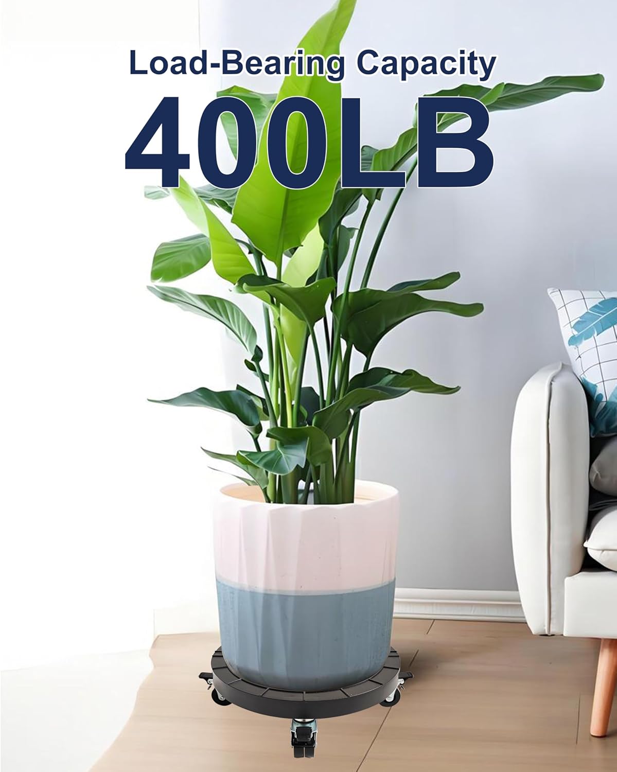 - 【4 Double Wheels & 400 Pounds】Unlike other flimsy plant caddy, this 14 inches rolling plant stand has 4pcs heavy duty twin-wheels with brake. Therefore, the force on the flower rack is more uniform, its maximum load-bearing capacity can reach 400 pounds.