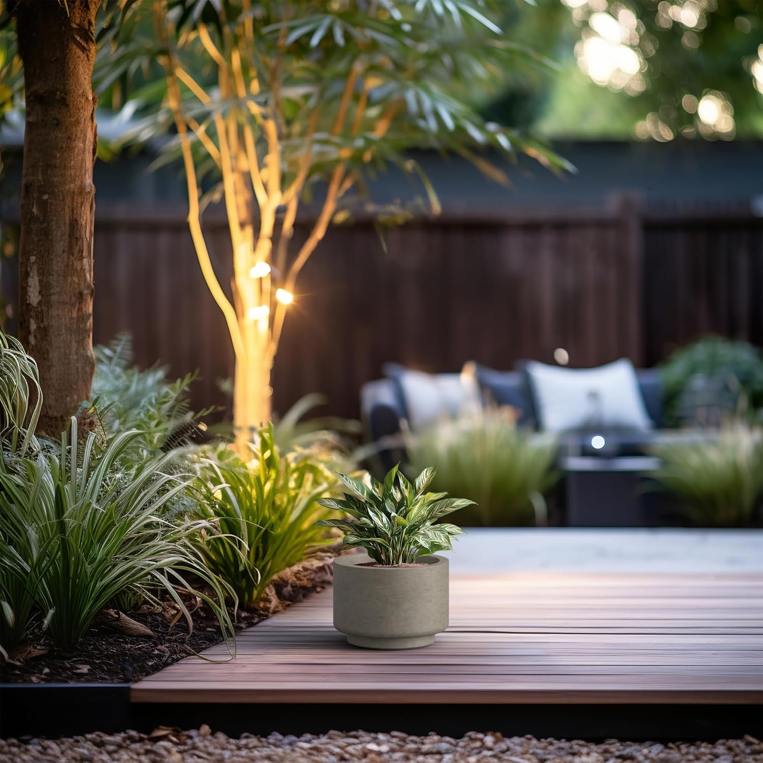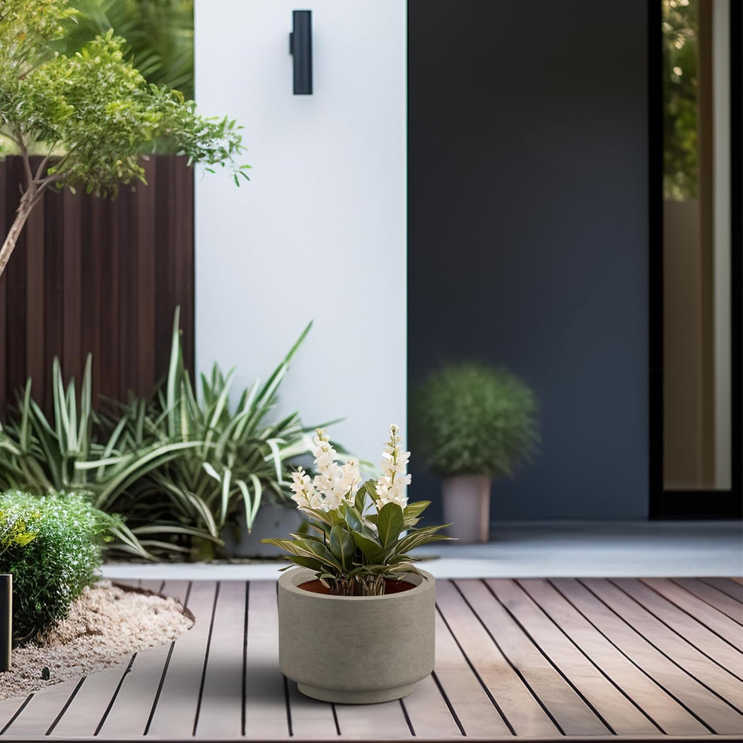 Kante 9.8 Inch Dia Concrete Planter, Round Pedestal Design Garden Pot for Indoor Outdoor Plants, Modern Flower Pot with Drainage Hole, Weathered Concrete Finish with Warm Brown Interior