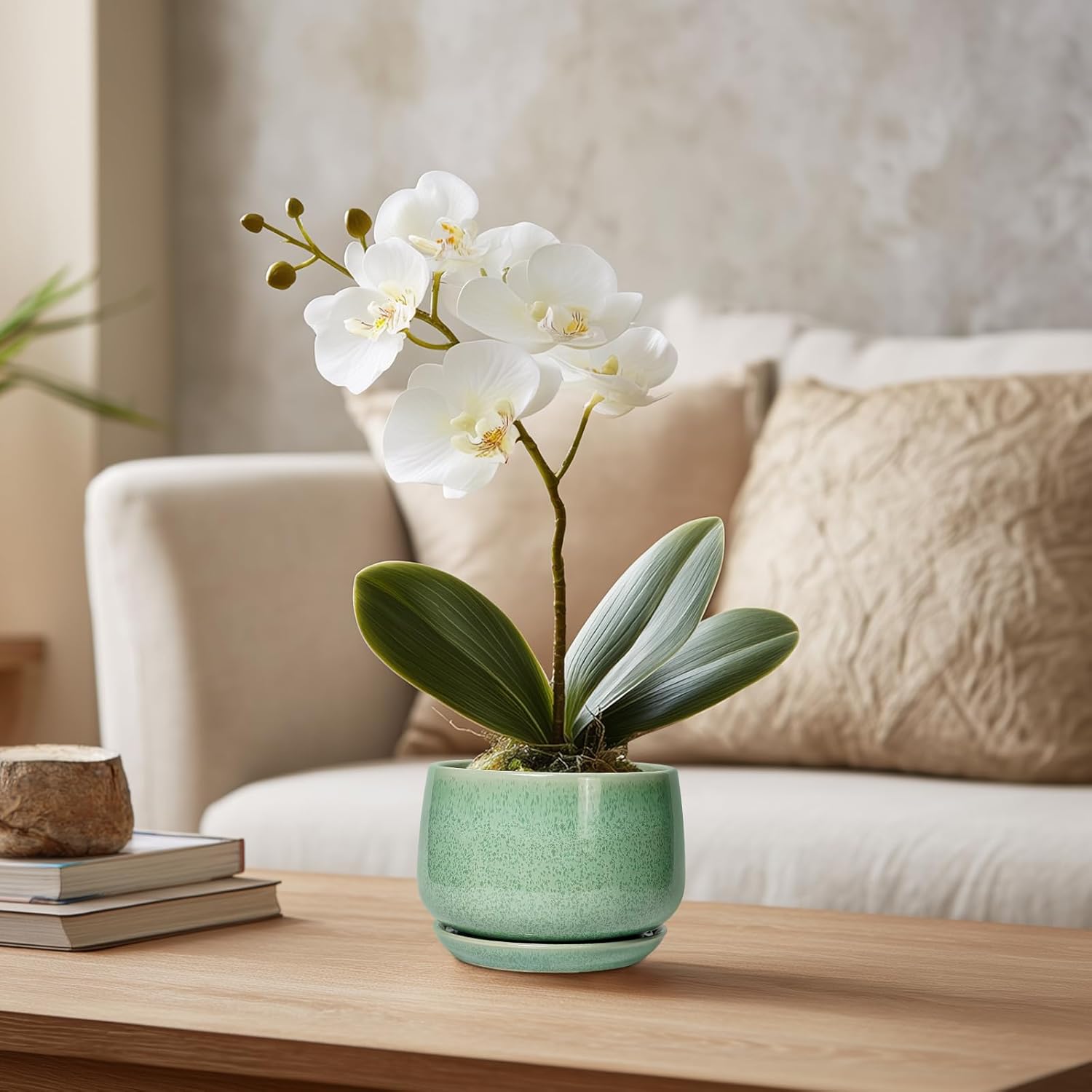 - Dimensions: The waist diameter of this ceramic flower pot is 4.4"/ 11.3cm, the external caliber is 4.0"/ 10.3cm, the height is 3.5"/ 9.0cm. This green plant pot is an ideal choice for growing succulent plants, cacti, aloe vera, orchids, snake plant, african violet, mint, rosemary, herbs, and other indoor & outdoor plants