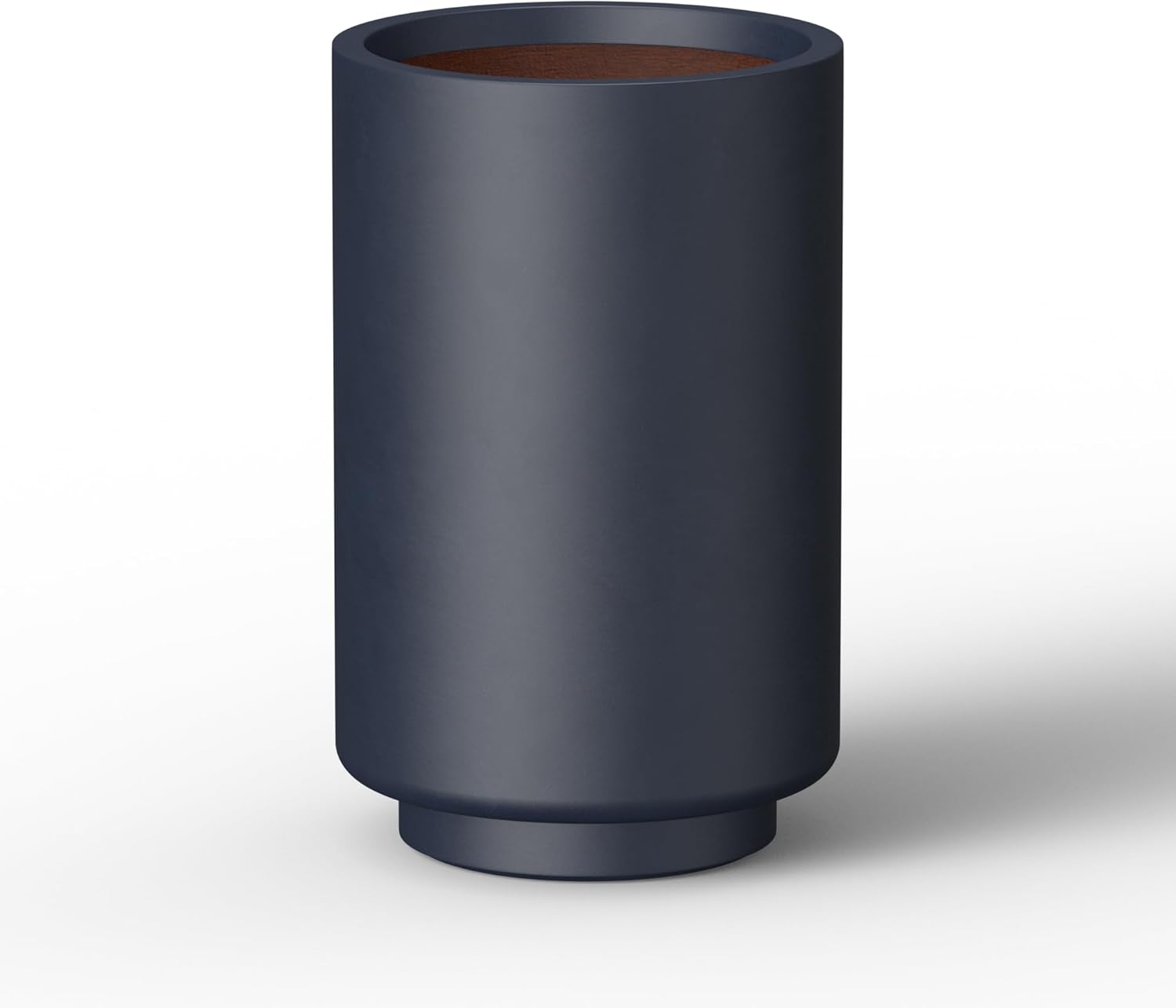 Kante 20.1 Inch Tall Concrete Planter, Round Pedestal Design Garden Pot for Indoor Outdoor Plants, Modern Garden Pot with Drainage Hole, Charcoal Finish with Warm Brown Interior