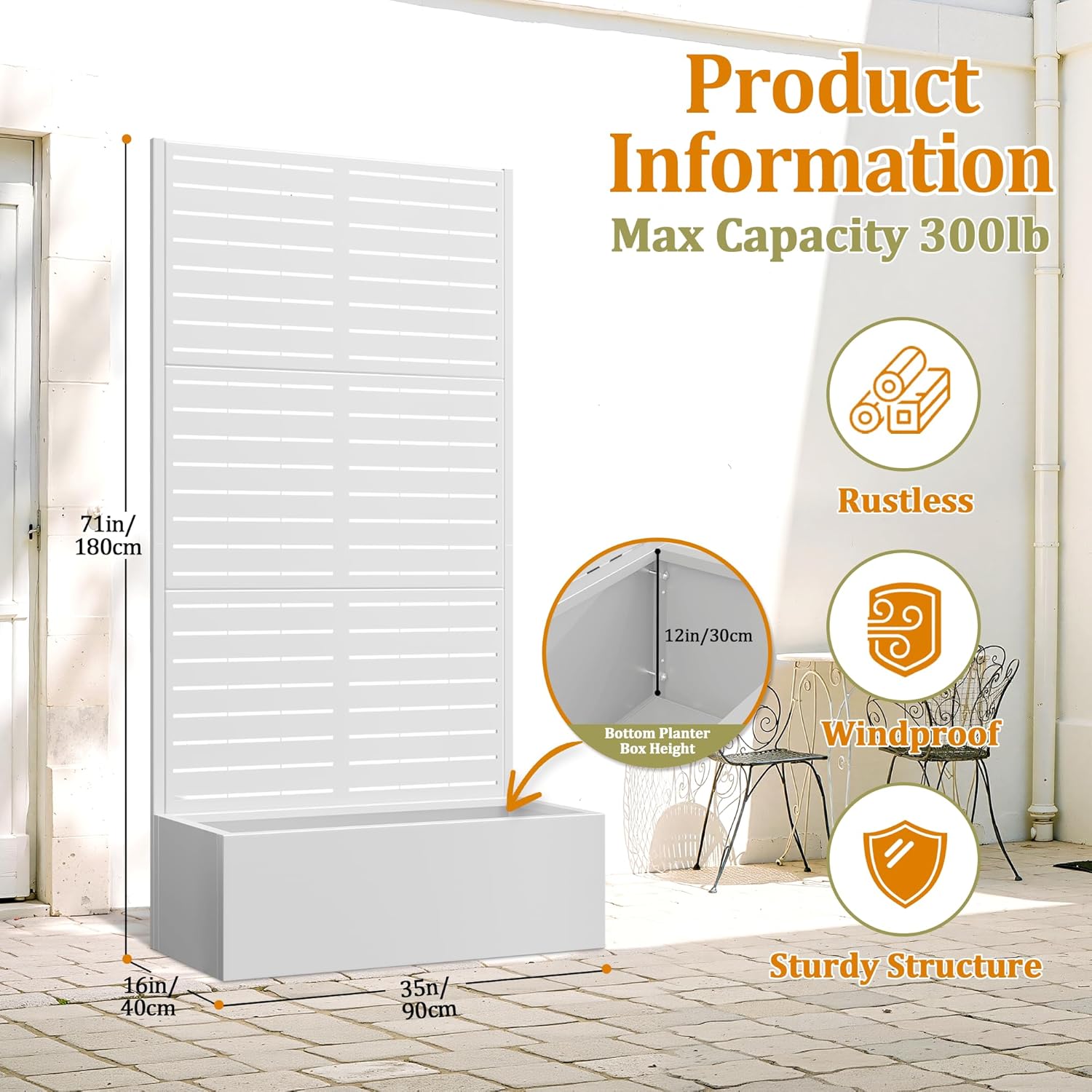 - 🛡️【Outdoor Privacy Screen & Metal Planter Box with Trellis】Use this metal planter box with trellis to create a natural divider on your patio, balcony, or yard. It’s more than just a garden raised bed for climbing plants—it’s also a beautiful metal planter with privacy screen that offers shade and separation. The sleek black frame and vertical lines of this metal planter box with trellis make it both decorative and practical.