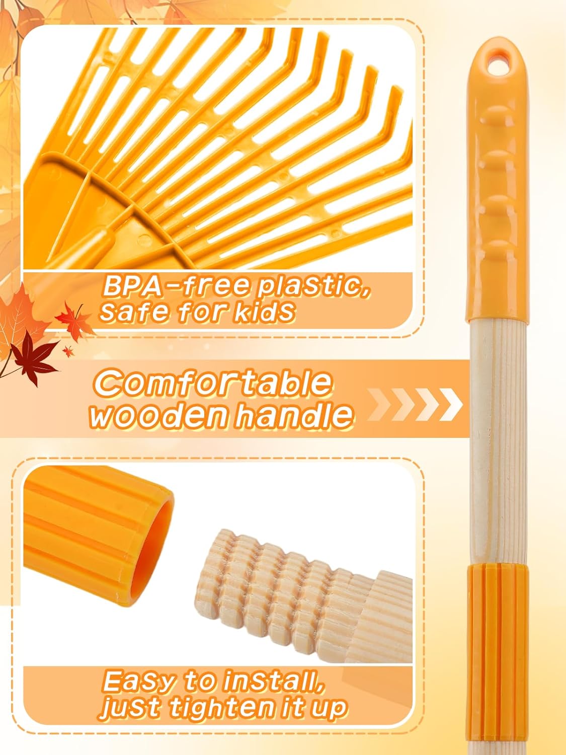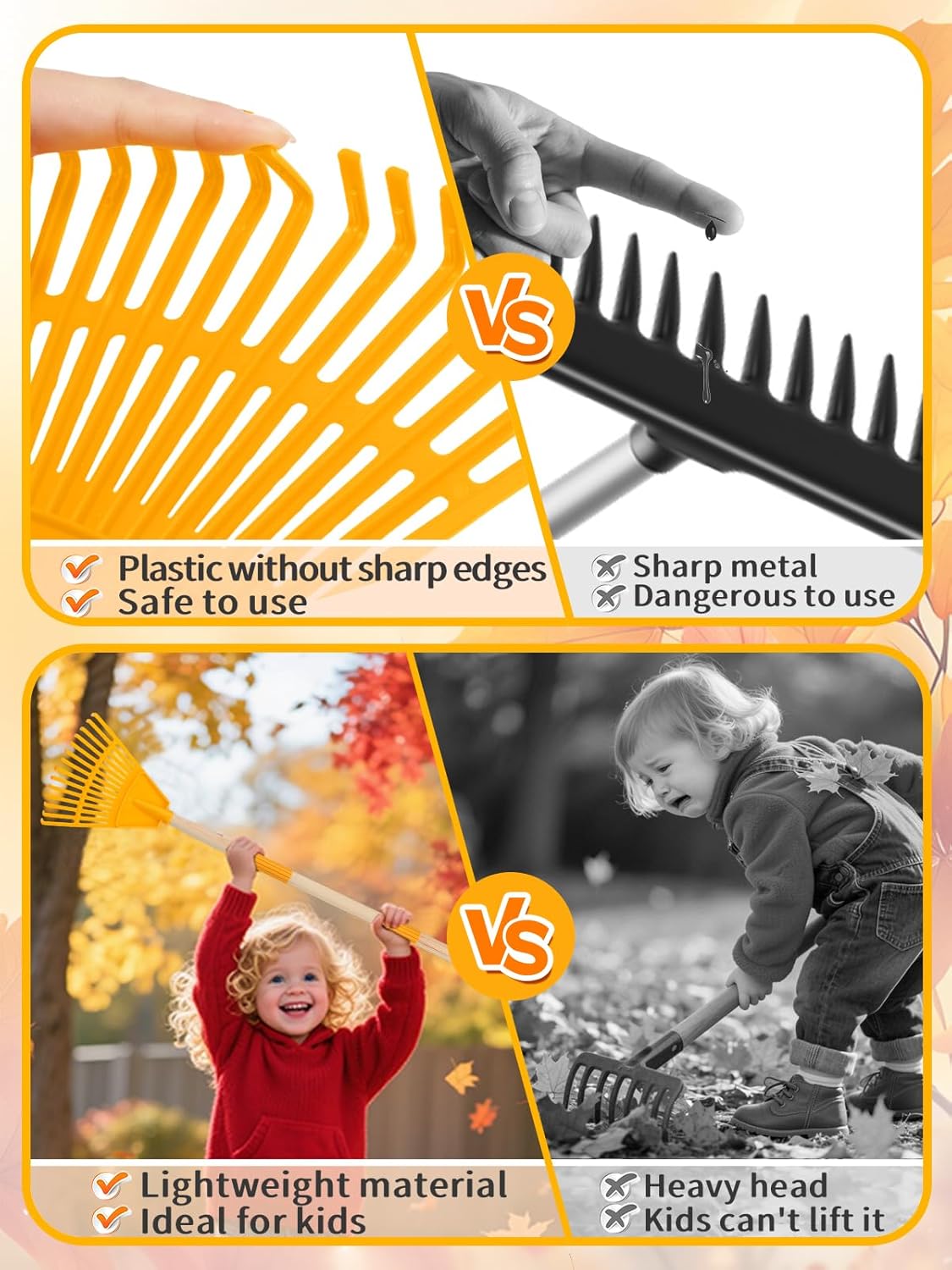 - Child-Friendly Design: Each plastic rake features a lightweight plastic head and smooth wooden handle (total length 34", width 7.9")—just 1/3 the weight of adult tools. Ergonomically sized for little hands to improve coordination without the risk of injury.