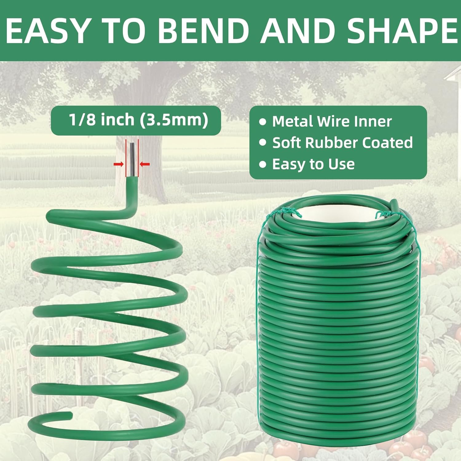 Soft Plant Ties, 66FT Green Garden Wire, Flexible Garden Twist for Climbing Plants, Tomatoes, Outdoor Plants, Vegetables, Flowers, Roses Plant Support (Diameter - 3.5MM)