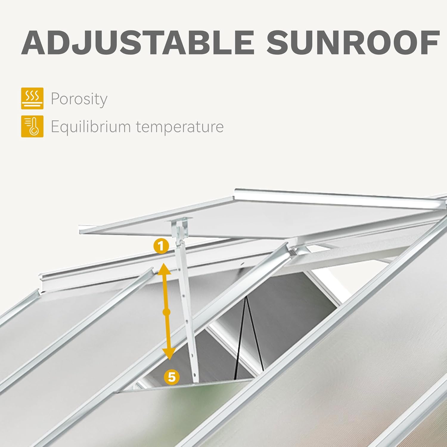 - SKYLIGHT ADJUSTMENT- This heavy duty green house features two adjustable skylights with various opening angles available, creating optimal air circulation system to sustain indoor ventilation and cooling; Innovative sliding door allows for seamless opening and closing, and saves more space than traditional ones