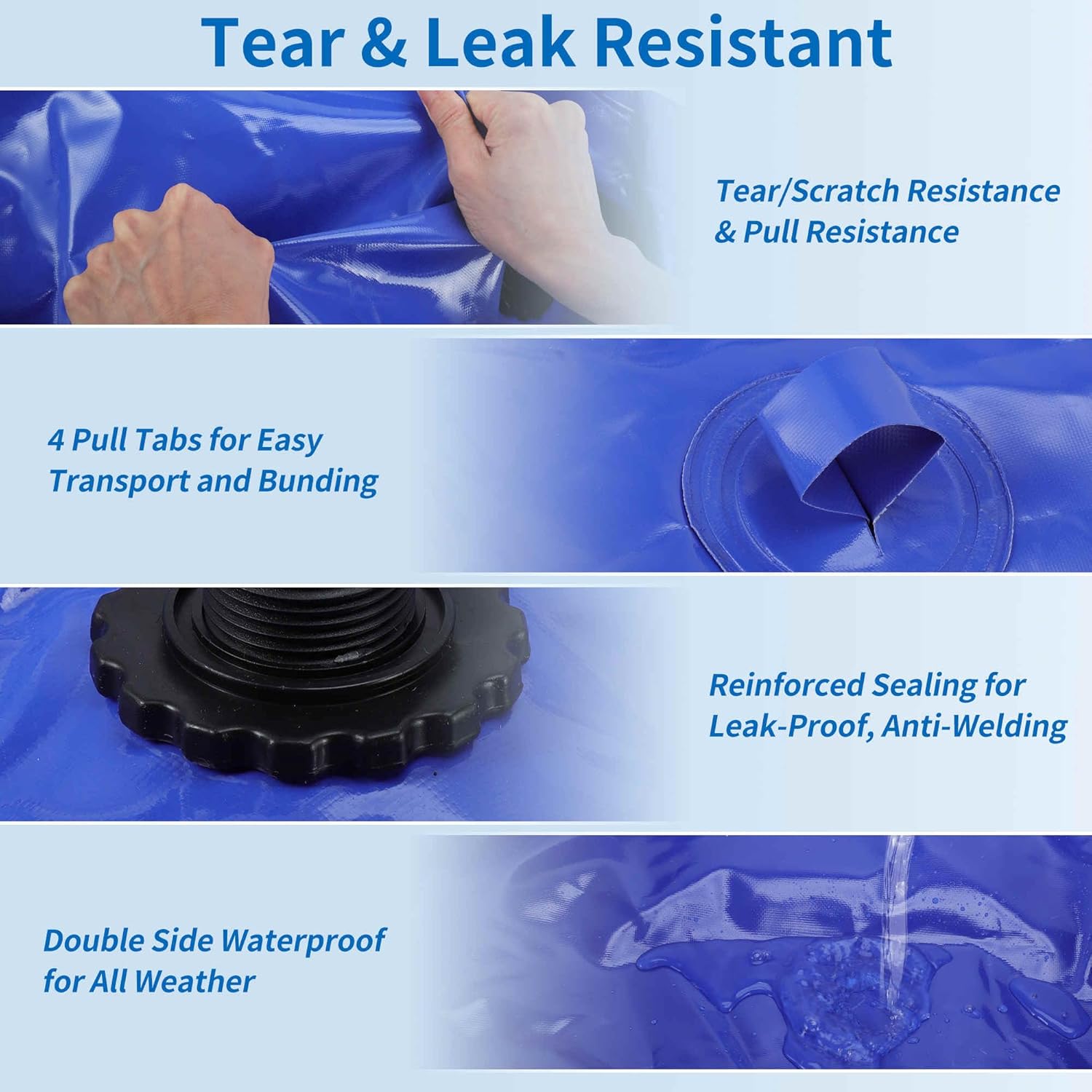 - [Reliable Quality] This water storage bag adopt with reliable nylon silk with a 1000D double-sided PVC, lightweight for portable carry. The interface and port have high frequency welded seal and reinforced seam, with high density coating aim for no leakage, ensure the reliable water storage for emergency and daily use.