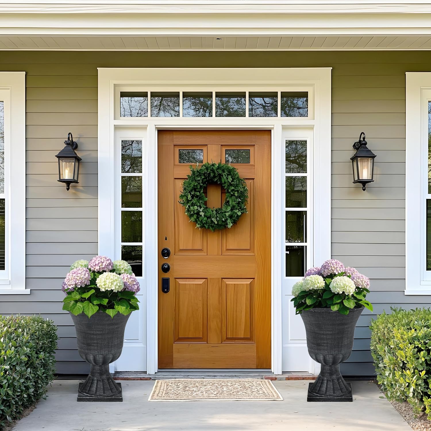 22" Large Urn Planters (Set of 2), Handmade Washed Black Plastic Flower Pots, Weatherproof for Porch, Garden, Patio or Home Décor