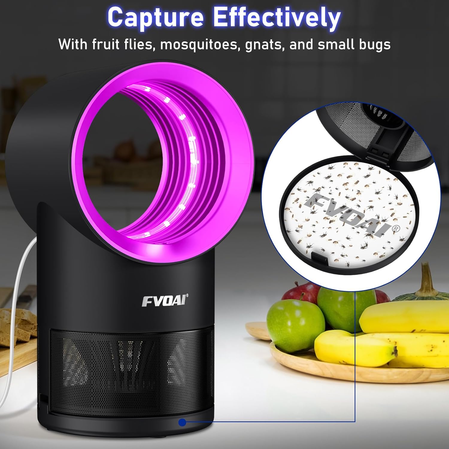 - Effective Result: Place insect traps indoor near fruits, plants or garbage cans and turn off lights for best effect. Fly traps catch fruit flies, mosquitoes, small insects moths and small bugs, paired with sticky glueboards, insects have nowhere to escape. EPA: 96587-CHN-1