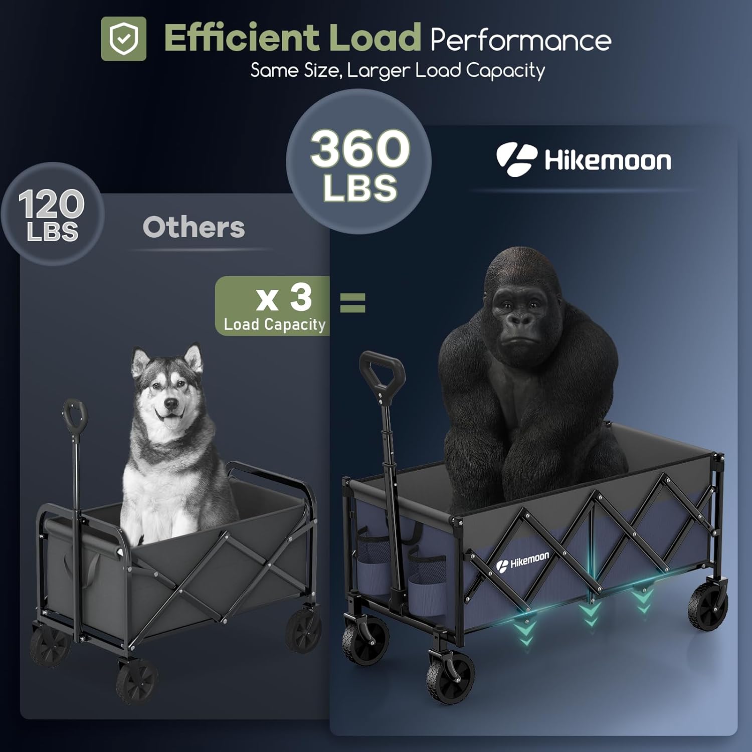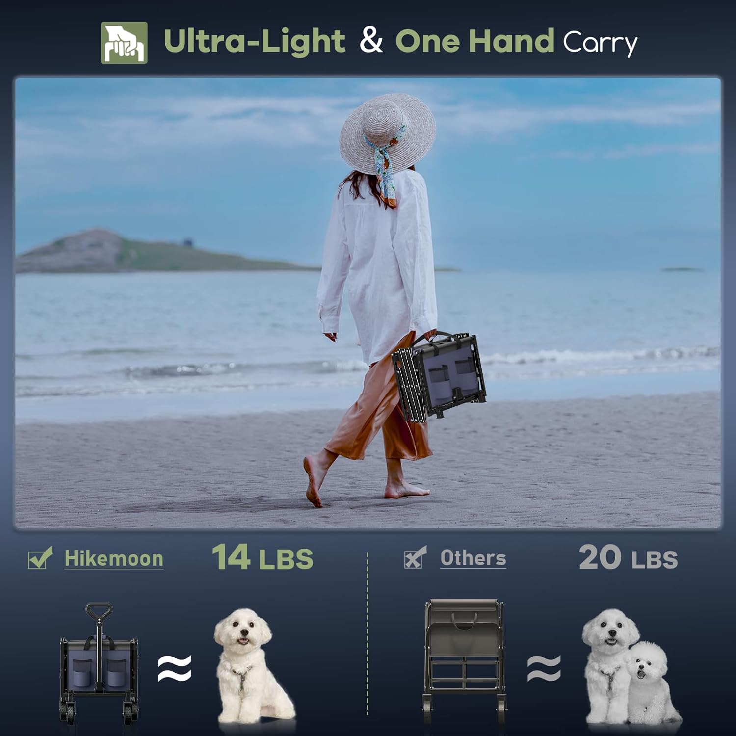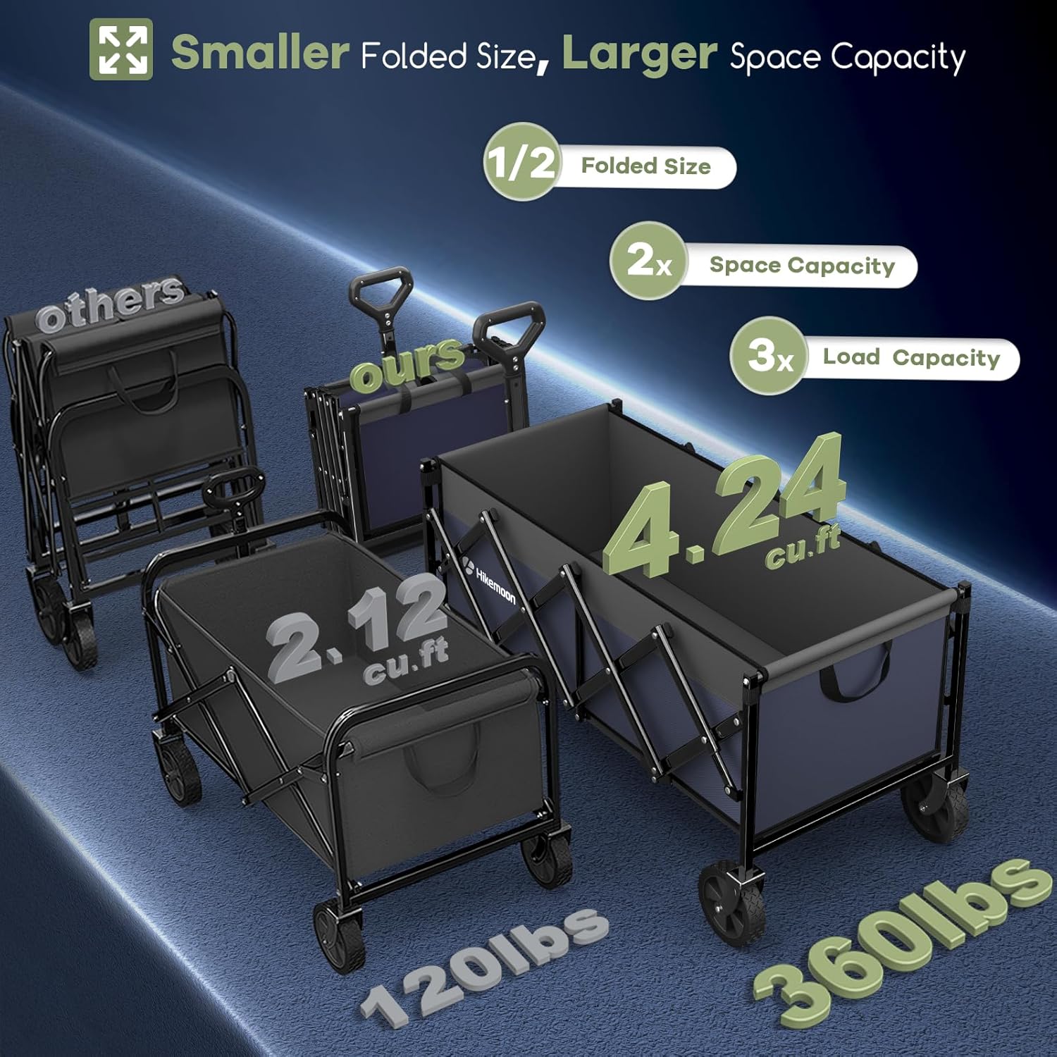 - 【𝟑𝟒" 𝐄𝐱𝐭𝐫𝐚 𝐋𝐨𝐧𝐠 𝐋𝐢𝐠𝐡𝐭𝐰𝐞𝐢𝐠𝐡𝐭 𝐖𝐚𝐠𝐨𝐧 𝐰𝐢𝐭𝐡 𝟏𝟐𝟎𝐋 𝐂𝐚𝐩𝐚𝐜𝐢𝐭𝐲】: Featuring a patented design, this wagon is 50% longer than standard wagons. Its spacious interior easily accommodates long items like folded tents. Despite its large capacity, it weighs only 14 lbs, making it 40% lighter than other wagons! You can carry this portable wagon effortlessly.