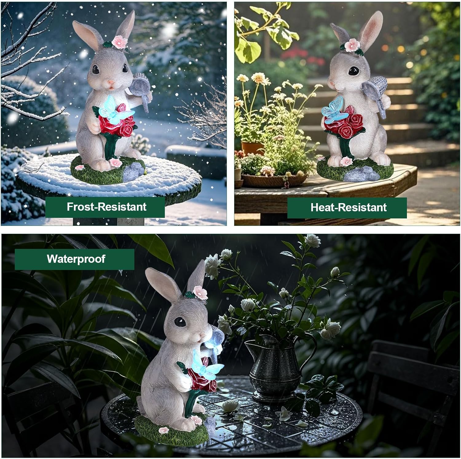 - Durable and Weatherproof Materials: Crafted from high-quality resin, our bunny garden statue is vibrant and intricately detailed. Equipped with UV-resistant coatings and an IP44 waterproof rating, it withstands rain, snow, and sun, ensuring long-lasting beauty for your outdoor decor.