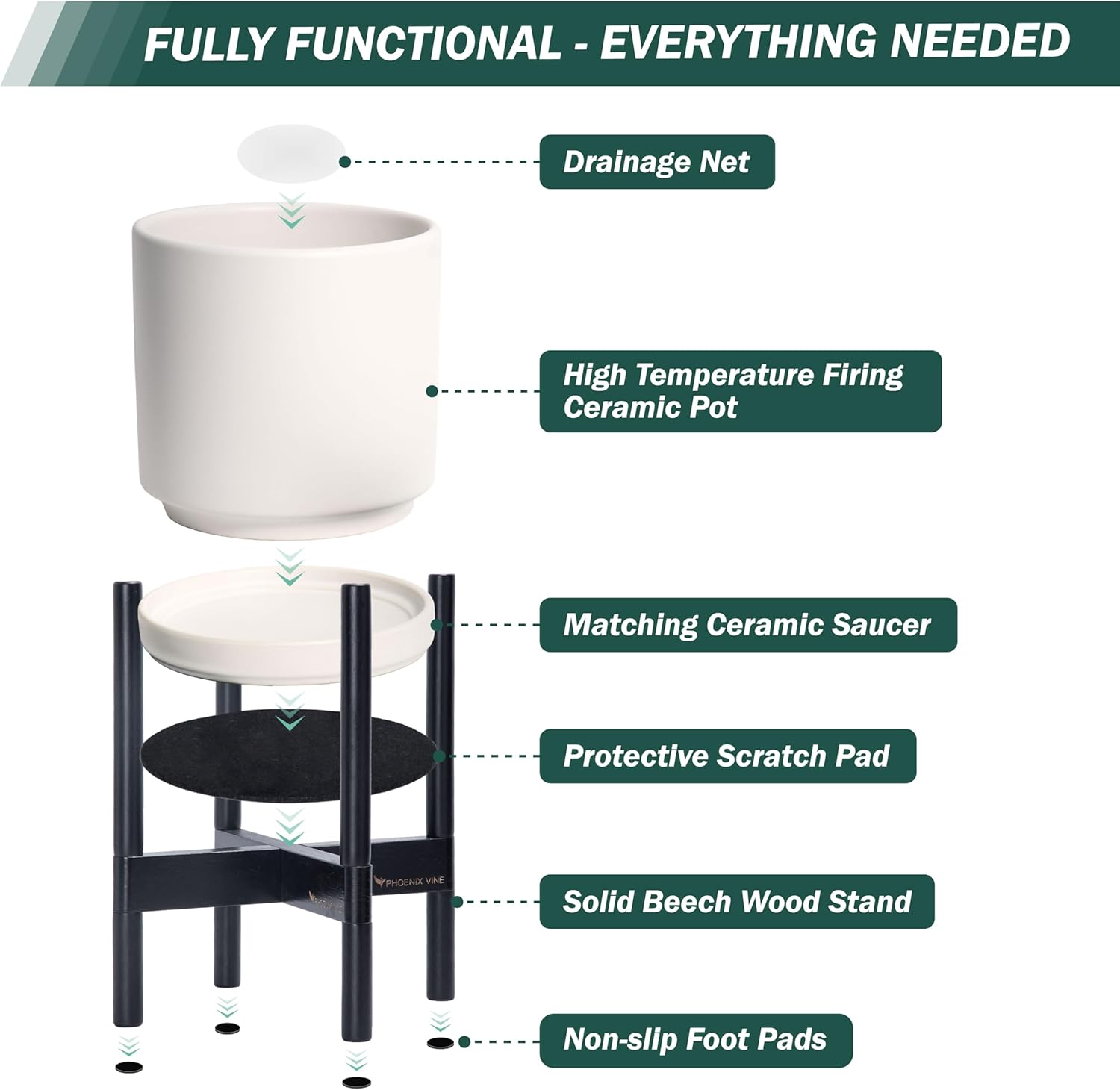 - A Complete Set: Mid-century ceramic planter, combined with a natural color, sculptural, solid wood stand that match perfectly together and looks great in anywhere.