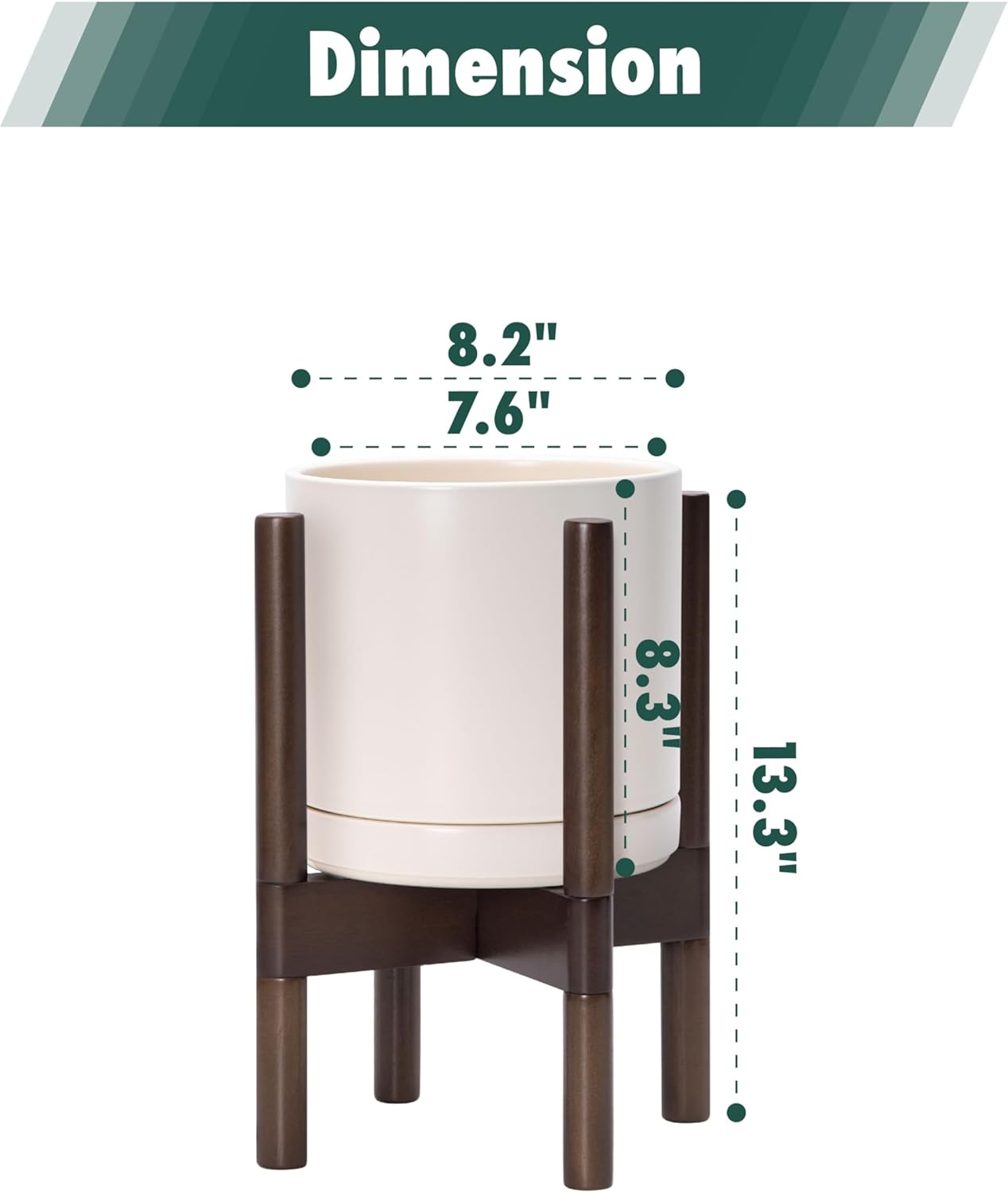 - 8 Inch Pot with Stand Set: Planter size: 8.2"Diameter x 8.3"H; pot with stand total height: 15 inch.