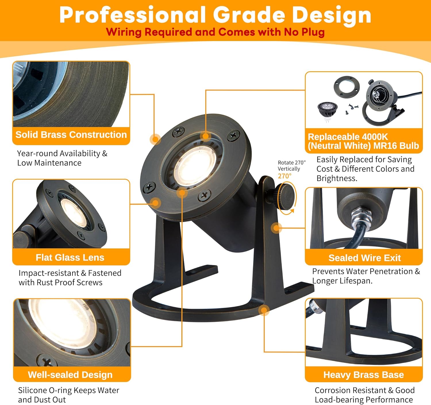 - šššššššš šššššššššš: Each LED pond light includes a high-quality 5W MR16 LED bulb, emitting a charming glow. The head is 270° adjustable, allowing you to precisely guide a 45° beam. This is an ideal light that can highlight the beauty of your yard.