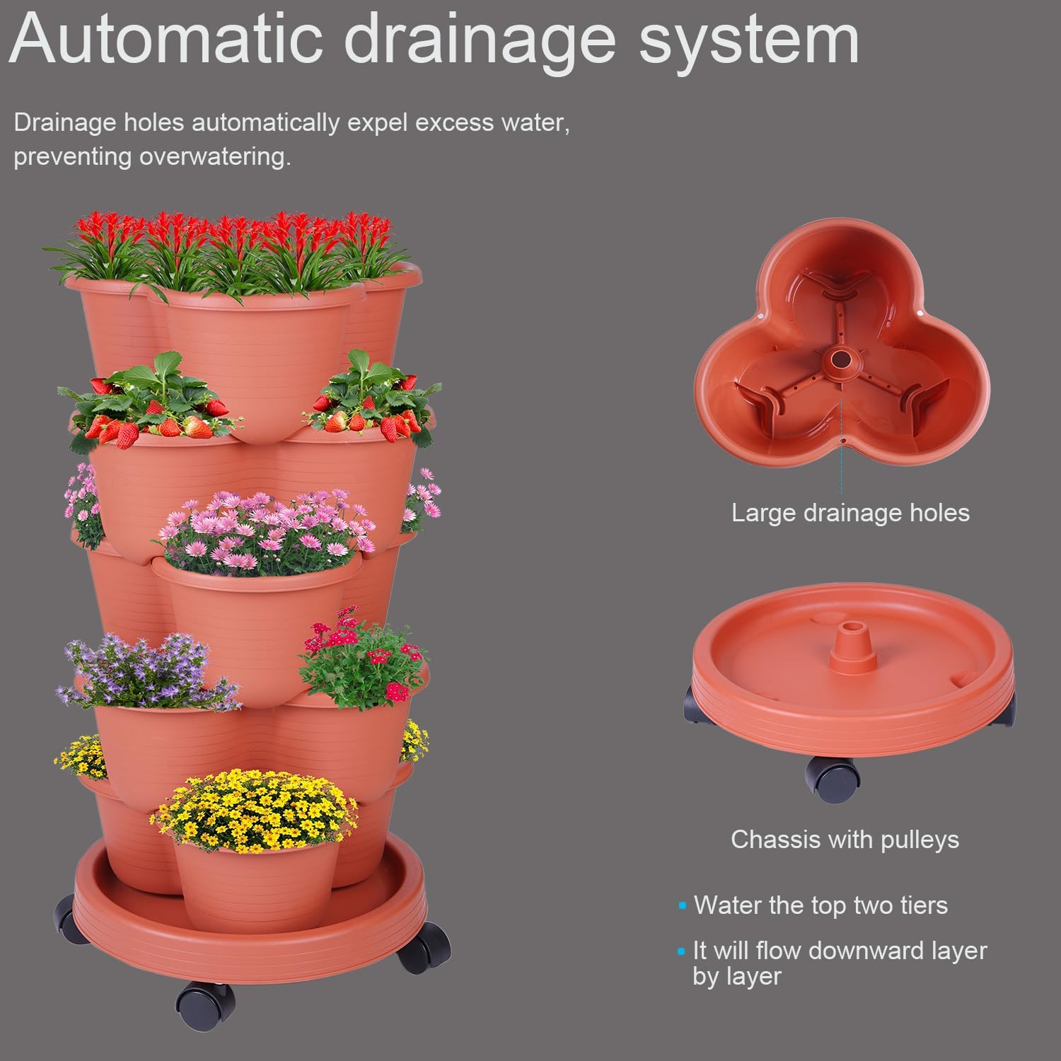 5-Tier Vertical Garden Tower Stackable Planter for Strawberries, Flowers, Vegetables & Herbs(Indoor & Outdoor)