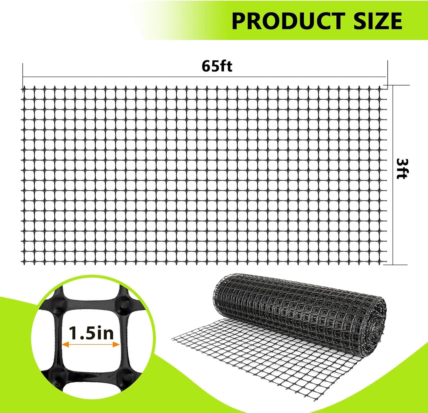 - MESH AND SIZE: 3' W by 65' L, 1.5 Inch mesh,Geogrid mesh is great for reinforce garden paths, decks, parking lots, driveways and other areas where structural integrity and stability are required, mesh holes with an aperture stability of 0.32m-N/deg