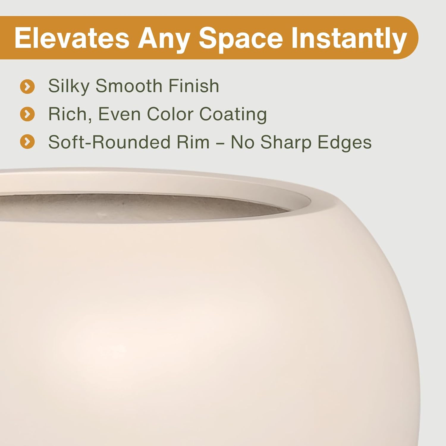 Globo Large Fiberstone Plant Pot, Large Planters for Indoor Plants, Outdoor Planters for Porch (Kilim Beige, 20" D x 16" H)