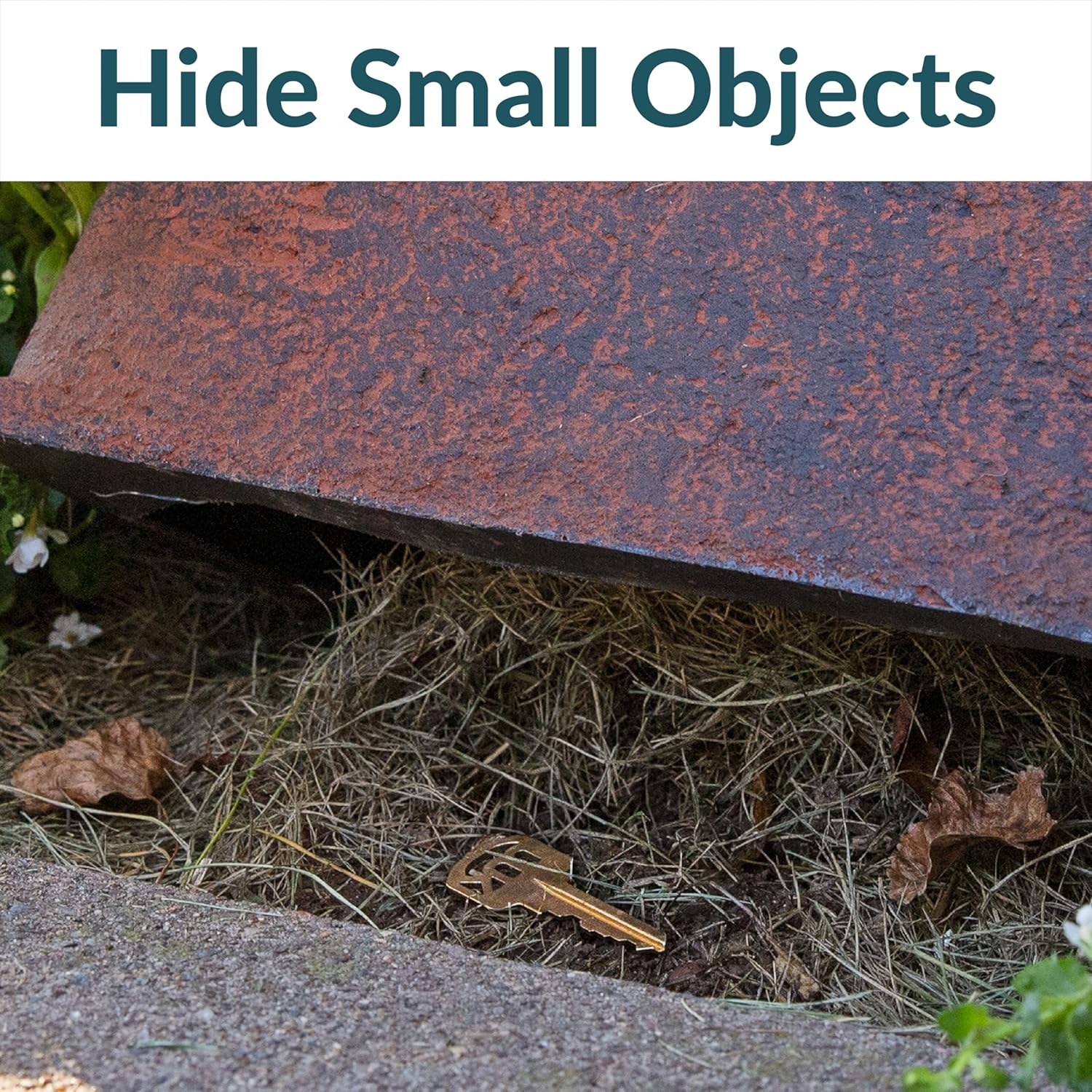 - SECURE AND WEATHER RESISTANT: Designed to stay put in any condition, this hollow landscape rock includes metal stakes for easy anchoring. Once secured, it remains firmly in place, preventing wind or accidental bumps from shifting it.