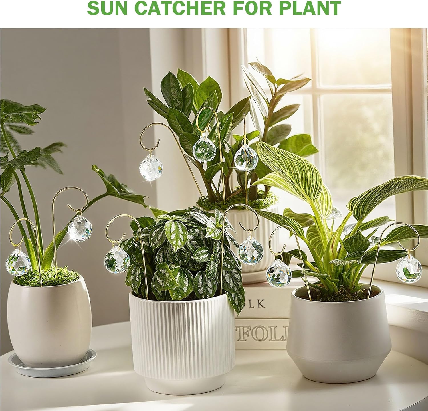 - Crystal Suncatcher Plant Trellis: Comes with 9pcs 30mm crystal ball prism and sturdy gold trellis – simply place the trellis in your pot and hang the prism