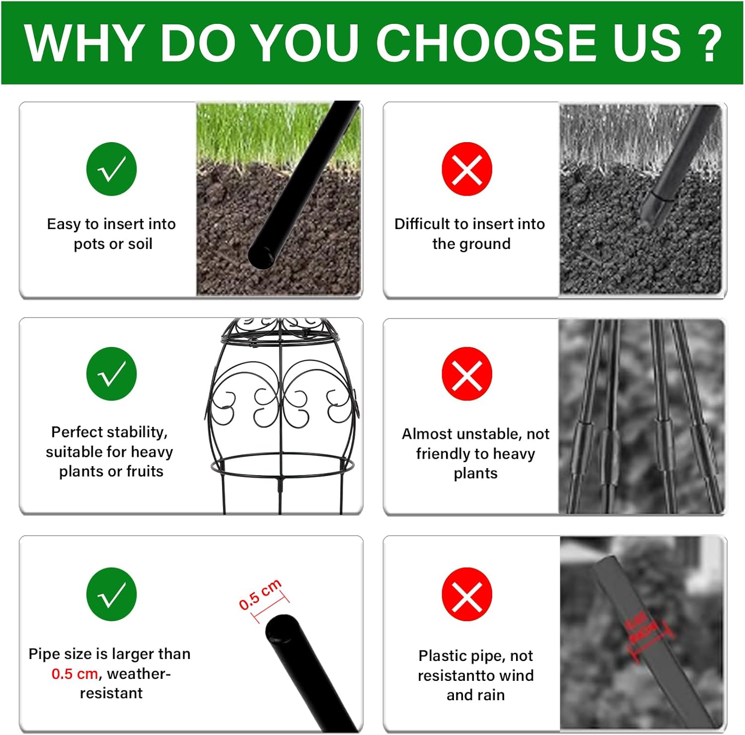 - Ideal Gift for Gardeners: This chic and functional metal obelisk makes for a thoughtful gift for gardening aficionados. Its unique design and practical features cater to both novice and seasoned gardeners, enriching their gardening journey—whether for personal enjoyment or as a heartfelt gift for friends and family.
