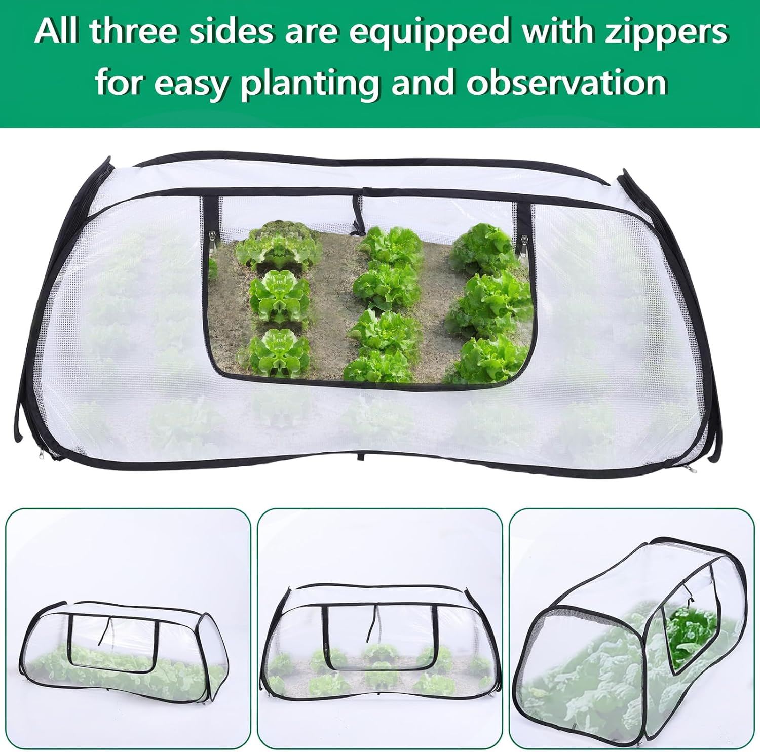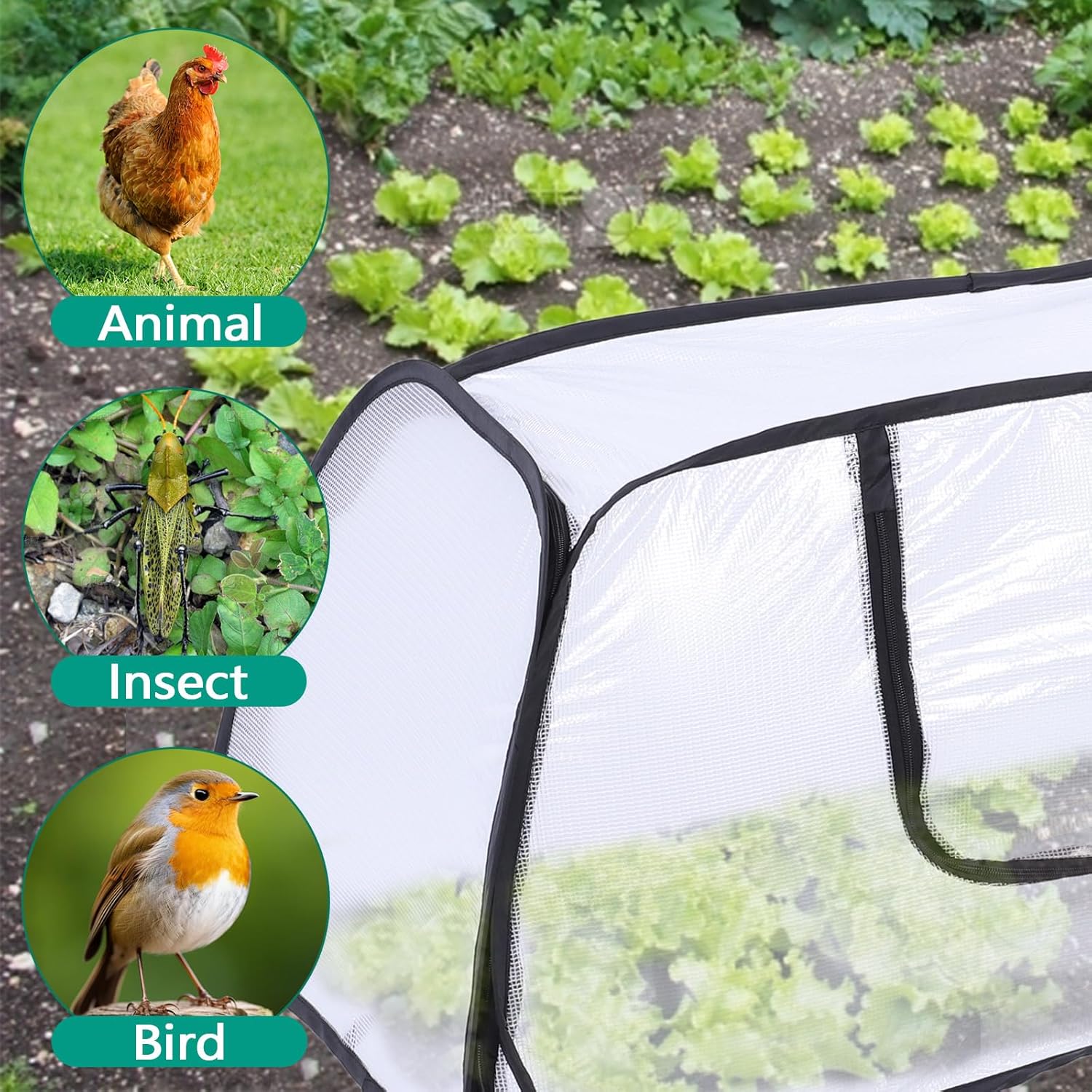 - 【YEAR-ROUND, MULTI-LOCATION DEFENSE】: Ideal for raised beds, in-ground rows, patios or market-garden plots. The cover acts as a mini greenhouse for cool spring and autumn nights, while the mesh barrier blocks birds, insects, rabbits and curious pets—delivering consistent, chemical-free protection for every stage of plant growth
