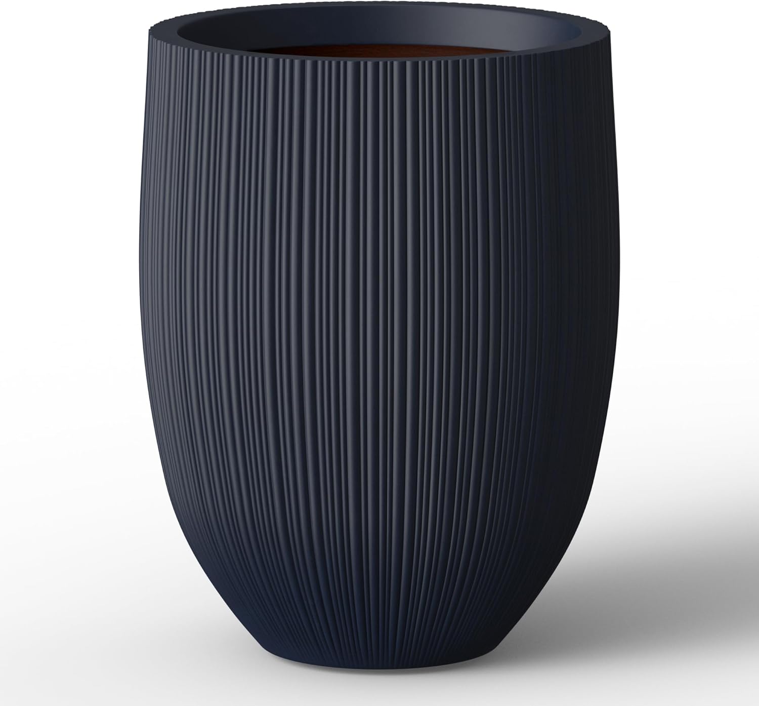 Kante Round Fluted Concrete Planter, 16.9-Inch Dia Barrel-Style Pot with Drainage Hole, Charcoal Finish with Warm Brown Interior, 13.7" Opening, for Indoor and Outdoor Use