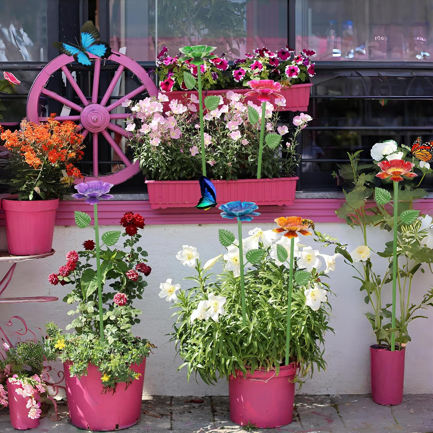 - Eye-catching design: The bee watering station for garden is made of metal material and has a flower shape, with colorful flowers and green stems and leaves. the butterfly bee water feeder is solid and perfectly integrated into the garden scene, increasing the artistic atmosphere of the garden and attracting the attention of viewers and garden pollinators.