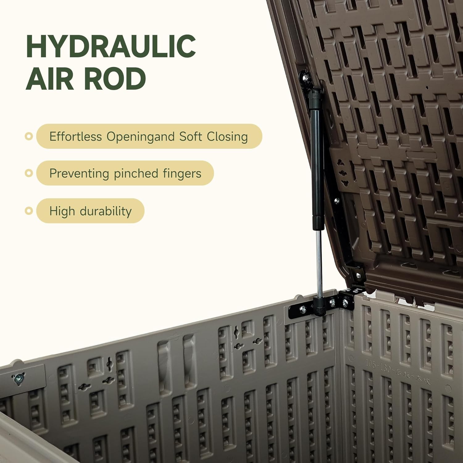 - SAFE HYDRAULIC LID: Equipped with an integrated gas strut, it allows effortless one-handed opening and a smooth, controlled close—preventing finger pinches and shielding contents from sudden impacts.​