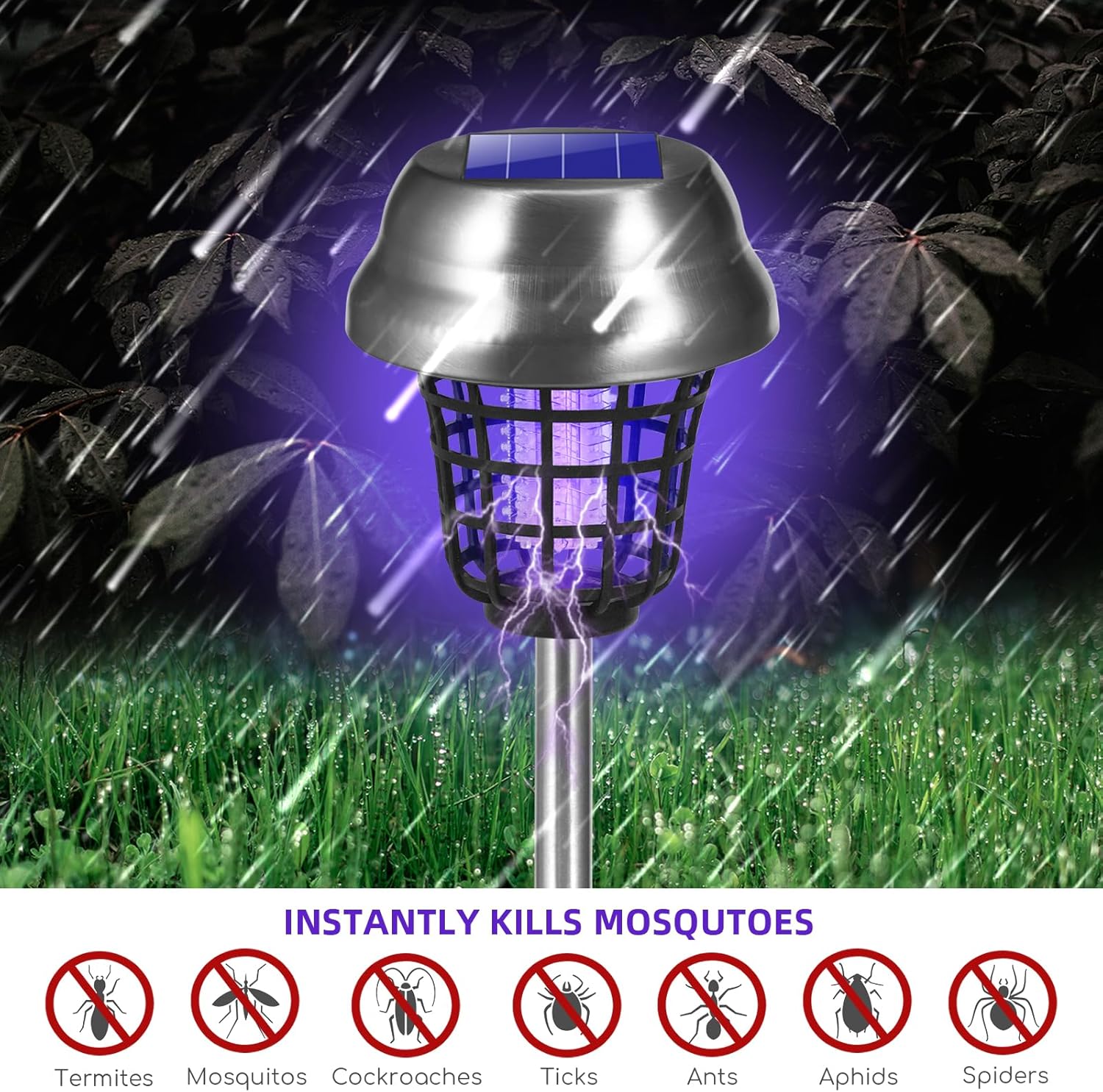 - Stainless Steel & Waterproof: This solar bug zapper outdoor is made of stainless steel, sturdy and stable, with excellent quality. Equipped with IP65 waterproof grade, the surface is beautiful and has good corrosion resistance, extending its service life