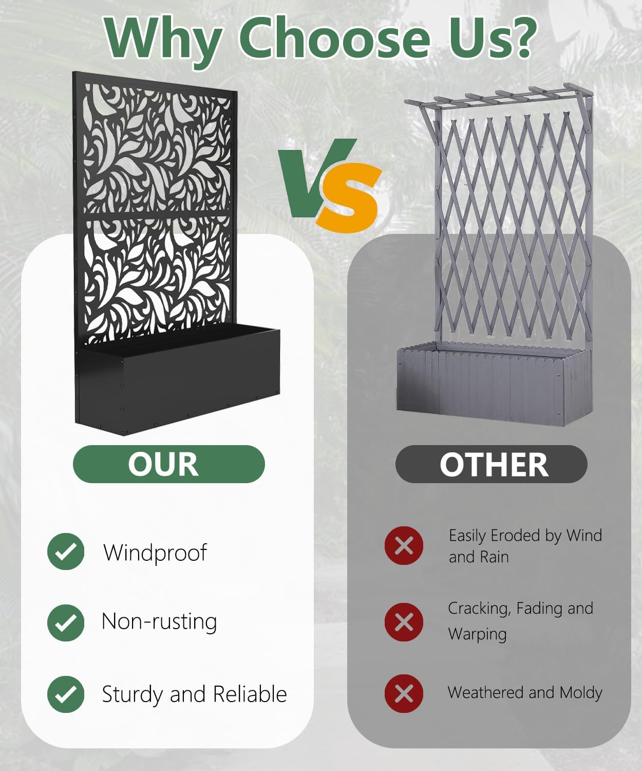 - Multi-Functional Raised Garden Bed with Trellis: This versatile metal planter box serves triple duty as: an elevated garden bed for vegetables and flowers,a sturdy trellis for climbing plants, and a decorative privacy screen - perfect for backyards, patios, and balconies. Its space-saving design maximizes your growing area while enhancing outdoor aesthetics.