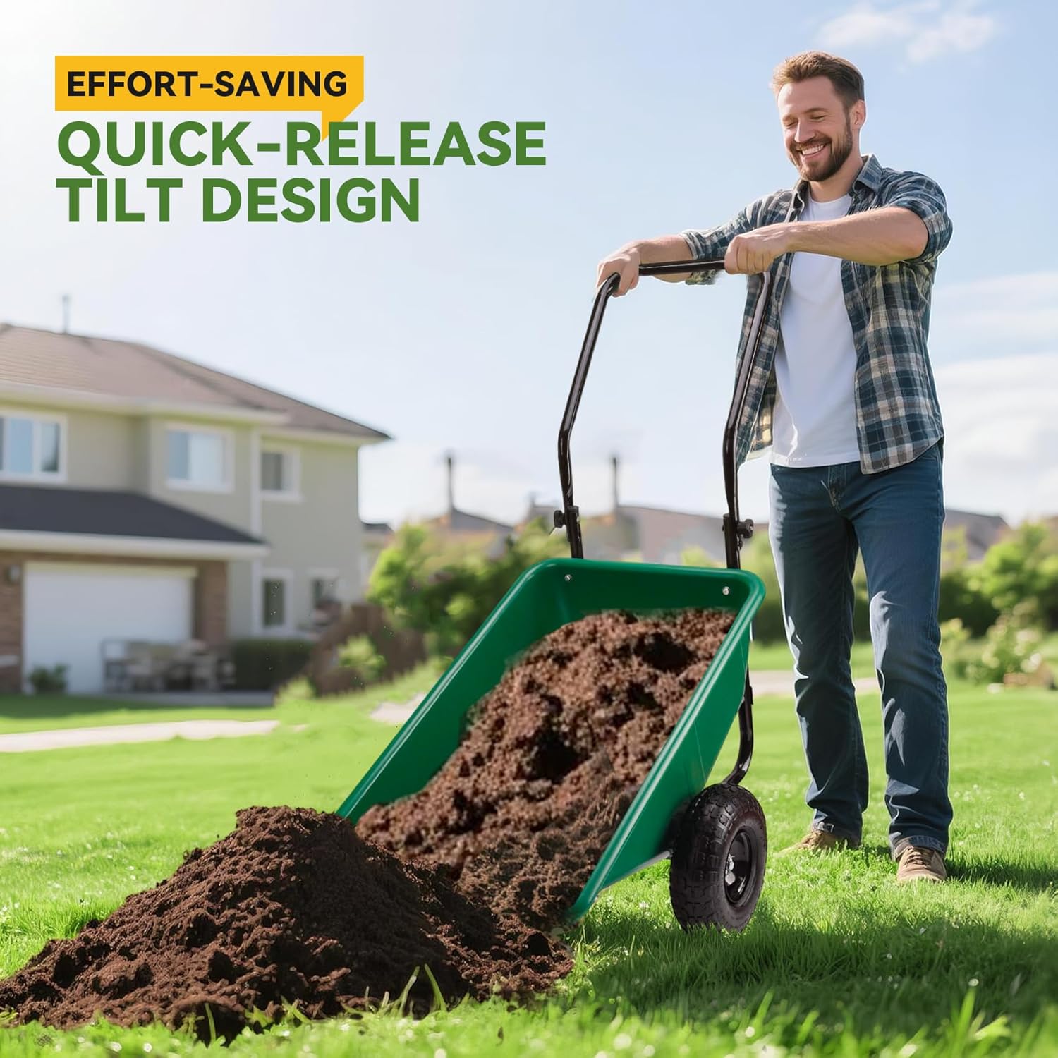 Folding Dual-Wheel Wheelbarrow,Heavy-Duty 330 LB Garden cart,10 inch Air-Filled Tires,Home Garden Yard Utility for Outdoor Lawn Yard Farm Ranch(Green)