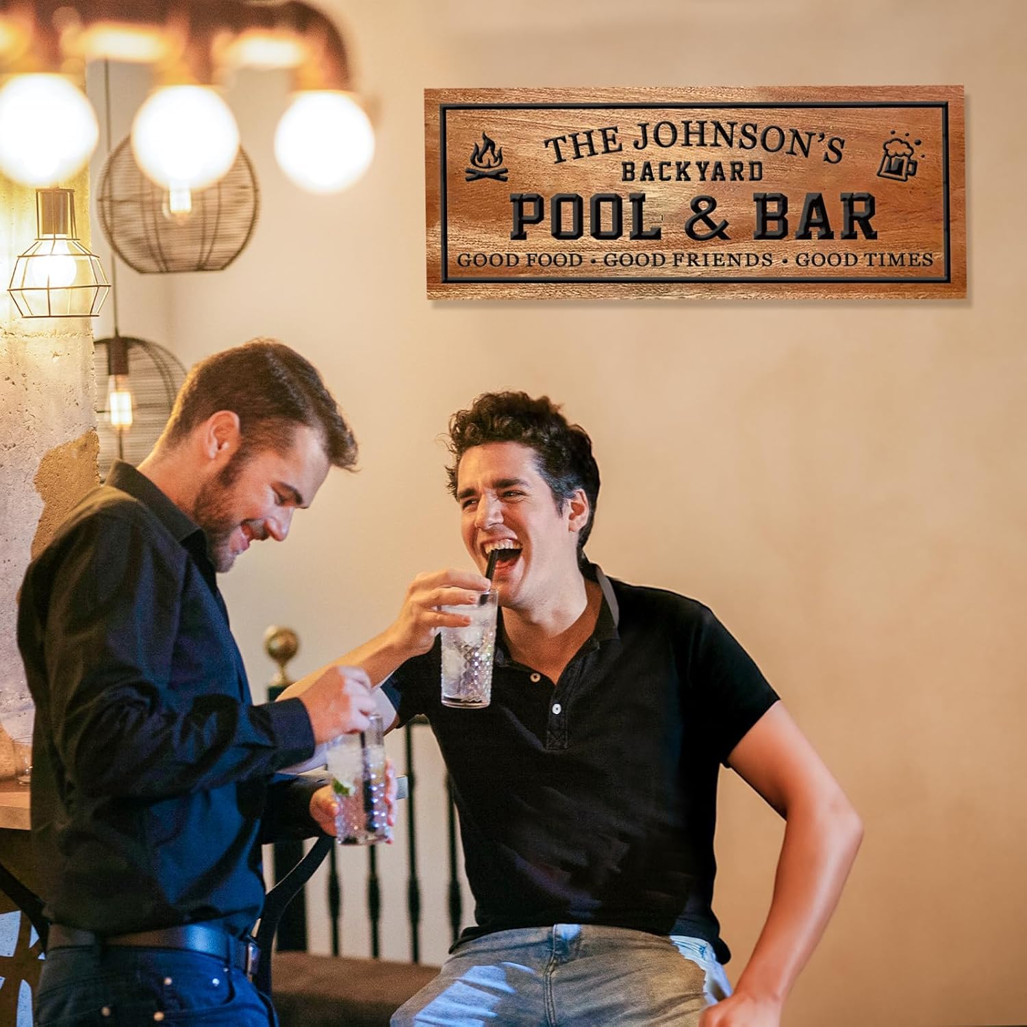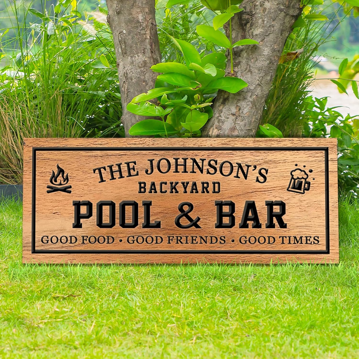 - Unique Backyard Statement:Add a personalized touch to your outdoor oasis with this custom backyard pool and bar sign. Great for entertaining spaces, patios, or outdoor kitchens, it highlights your family name and hospitality with rustic charm