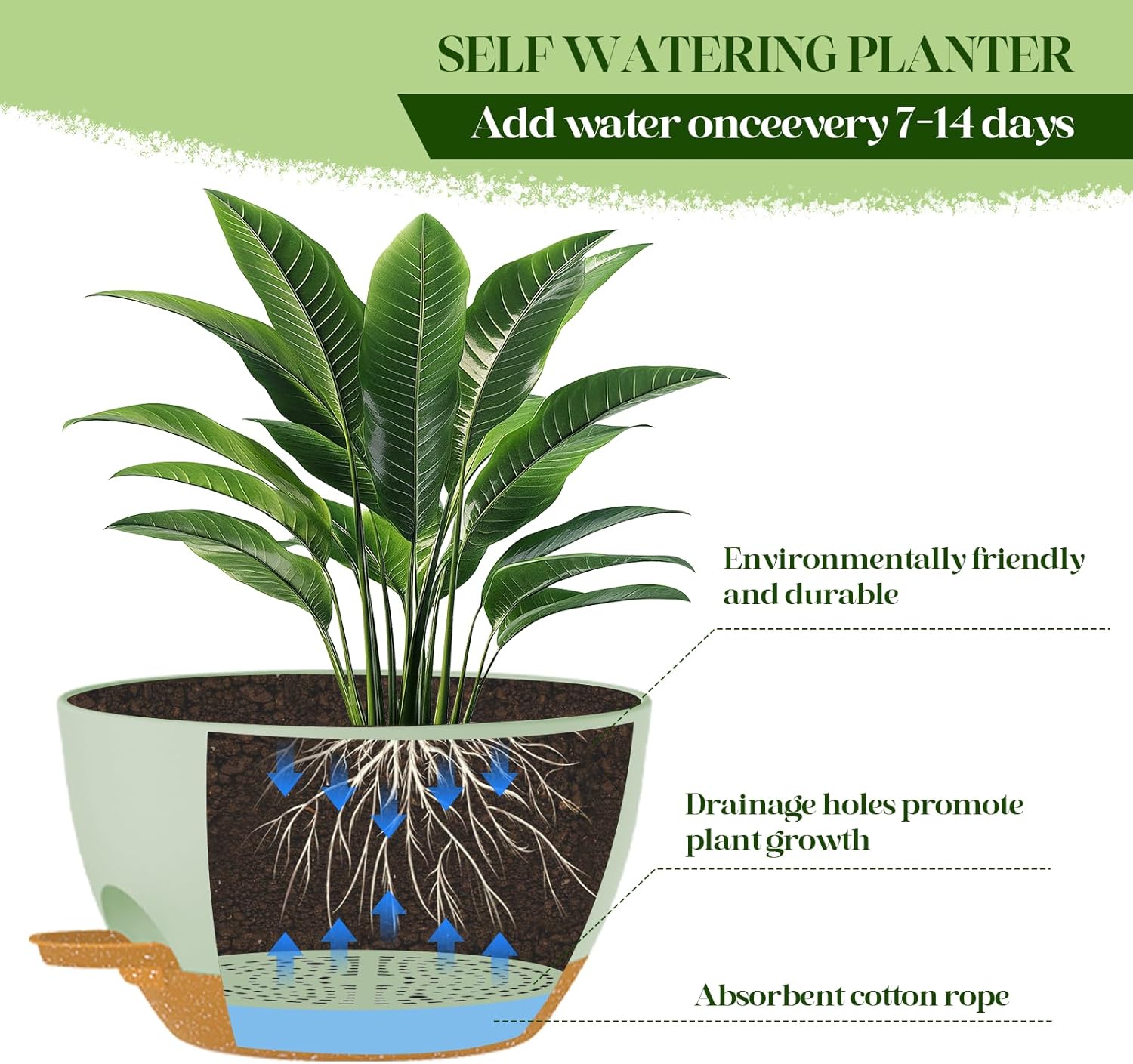 - ā 2 Large Self-Watering Planters: Double the value! Includes two 10-inch wide plastic hanging planters with built-in self-watering reservoirs to reduce the need for frequent watering and keep plants healthier.