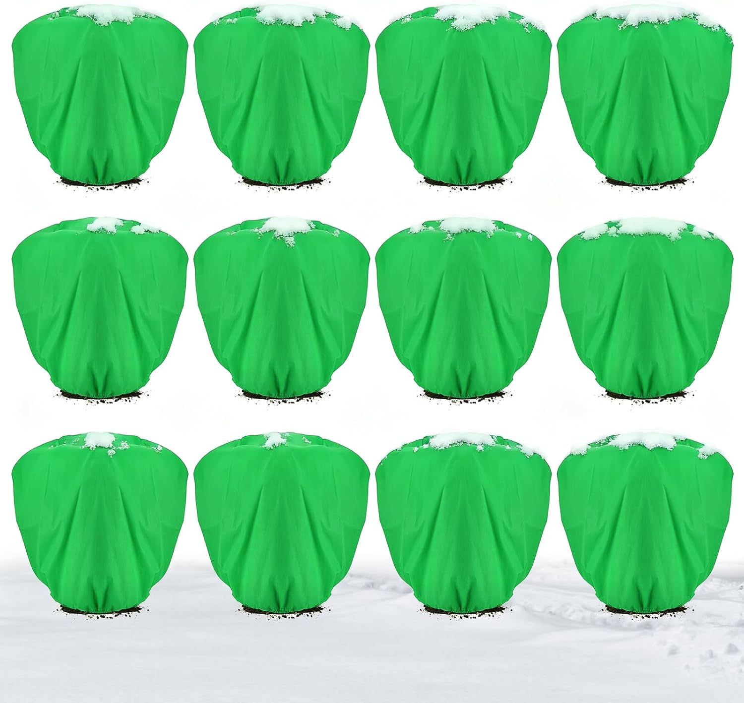 ANPHSIN 12 Pcs 39.3in x 39.3in Plant Covers Freeze Protection - Winter Shrub Plant Protection Bags, Frost Blankets Cloths with Drawstring for Outdoor Garden Plants, Green