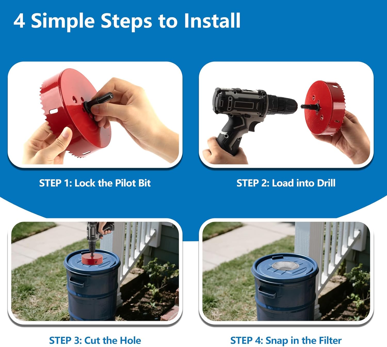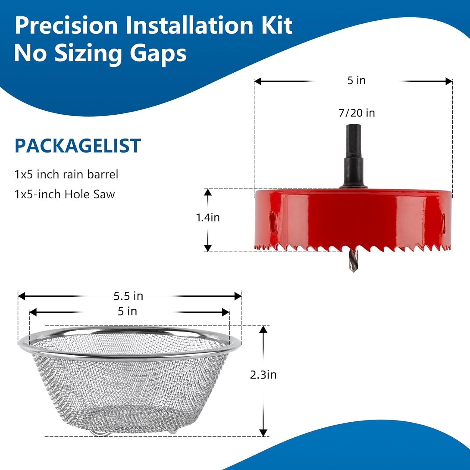 - 【Precision Installation Kit】Includes custom-sized 5" hole cutterguaranteeing perfect fit of the rain barrel screen—zero sizing errors.hole saw is made of high-speed steel Bi-Metal construction, high hardness, durable and rust-proof.