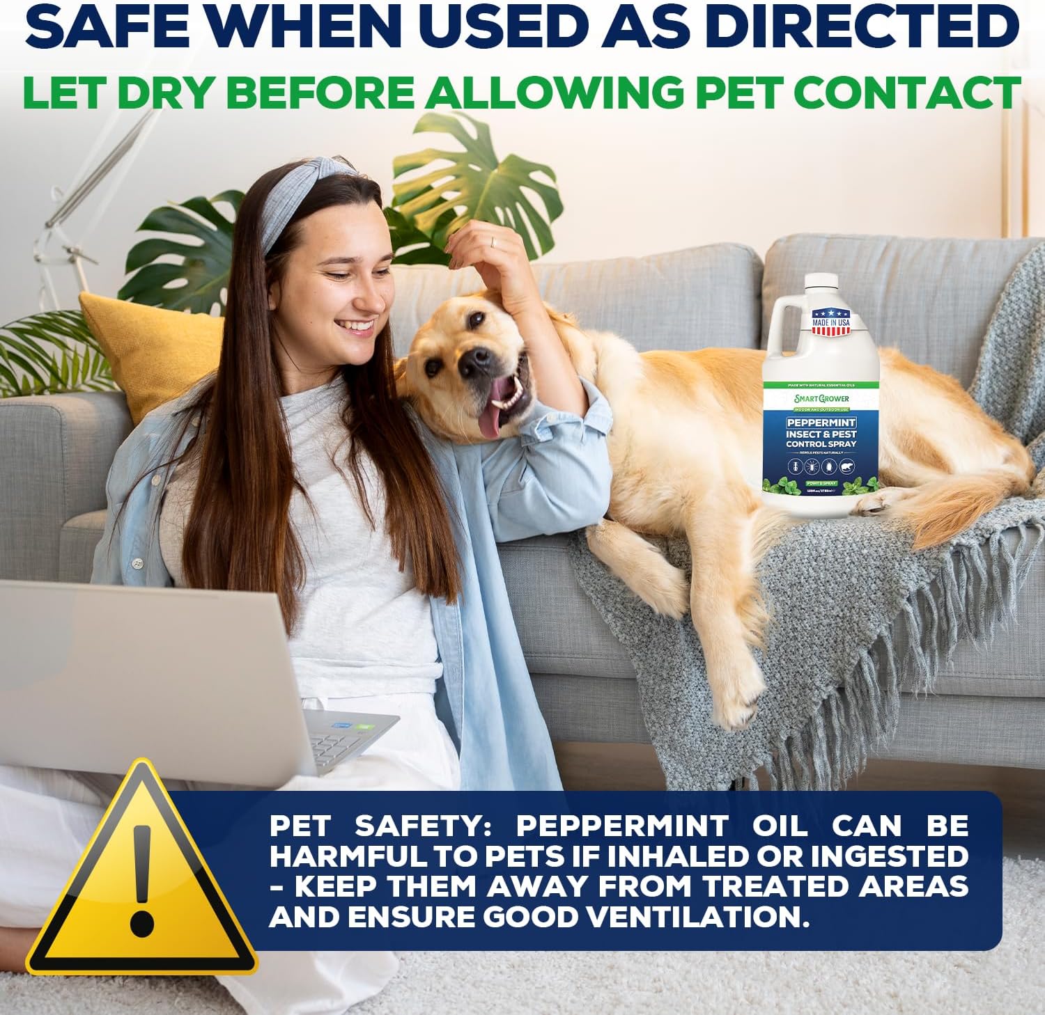 All Natural Peppermint Oil Insect & Pest Control Spray Repels Mice, Spiders, Ants, for Home, Indoor, Outdoor, Garden Maximum Strength Smart Grower Ready to Use 128 FL OZ