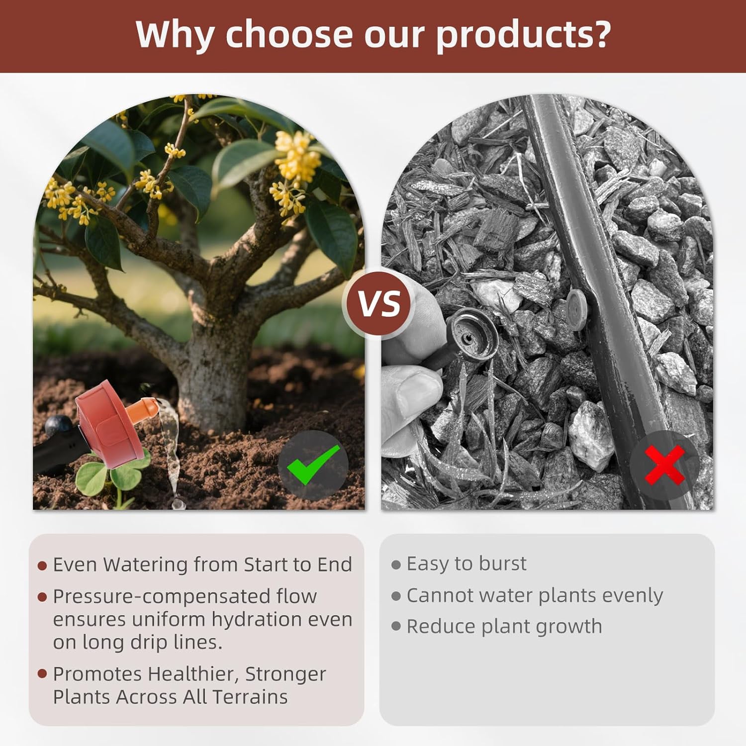 - Built to Last: Our 3 GPH Pressure Compensating Spot Watering Drippers/Emitters are made from premium UV-resistant plastic to withstand heat, sun, and outdoor weather. Designed for year-round performance, it won't crack, age or leak - ensuring reliable drip irrigation every season.
