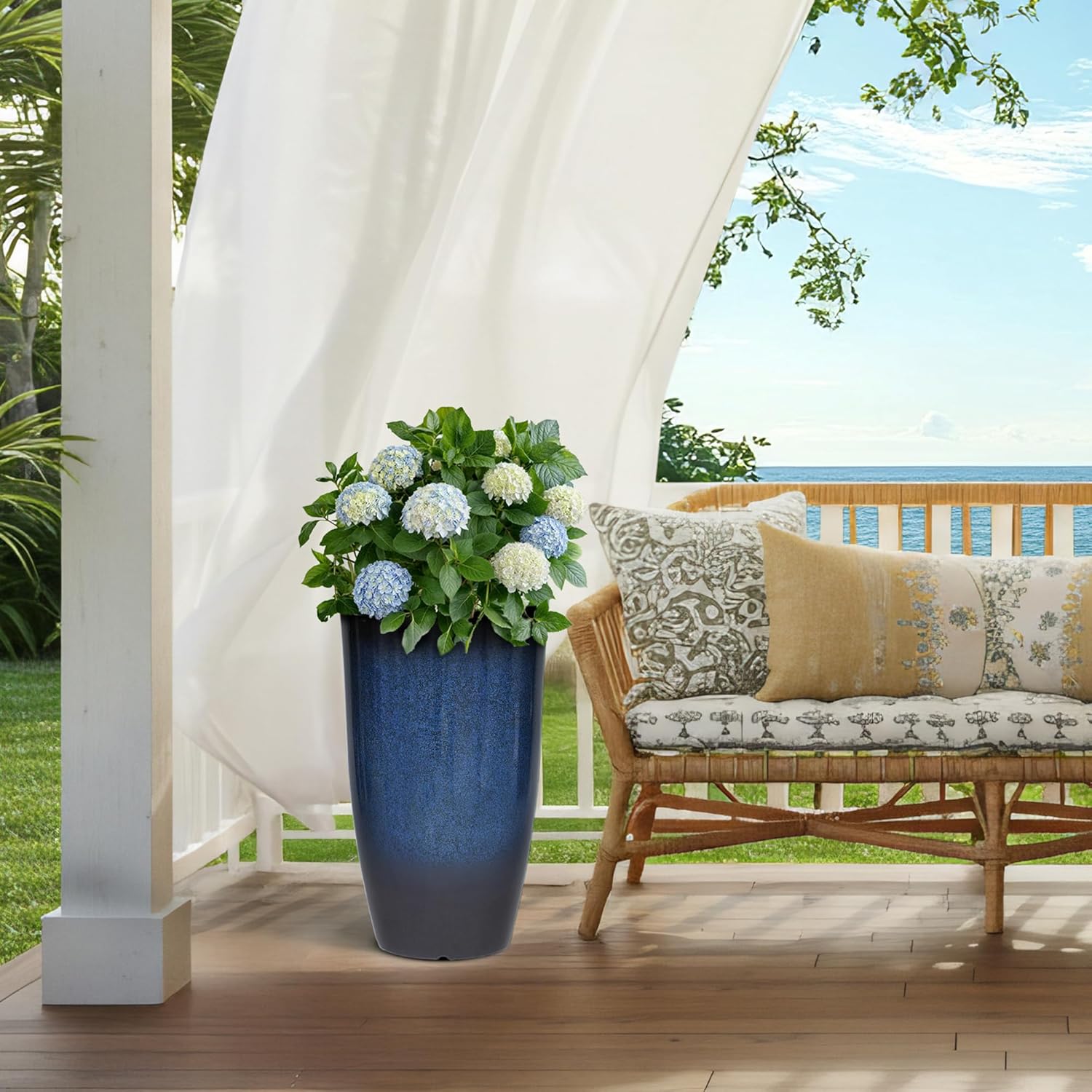 23.75" H Large Tall Outdoor Planters, Set of 2 Plastic Large Flower Pots for Outdoor Plants, with Gradient Cobalt Bule Finish, Weather-Resistant for Porch, Garden, Patio or Indoor Use