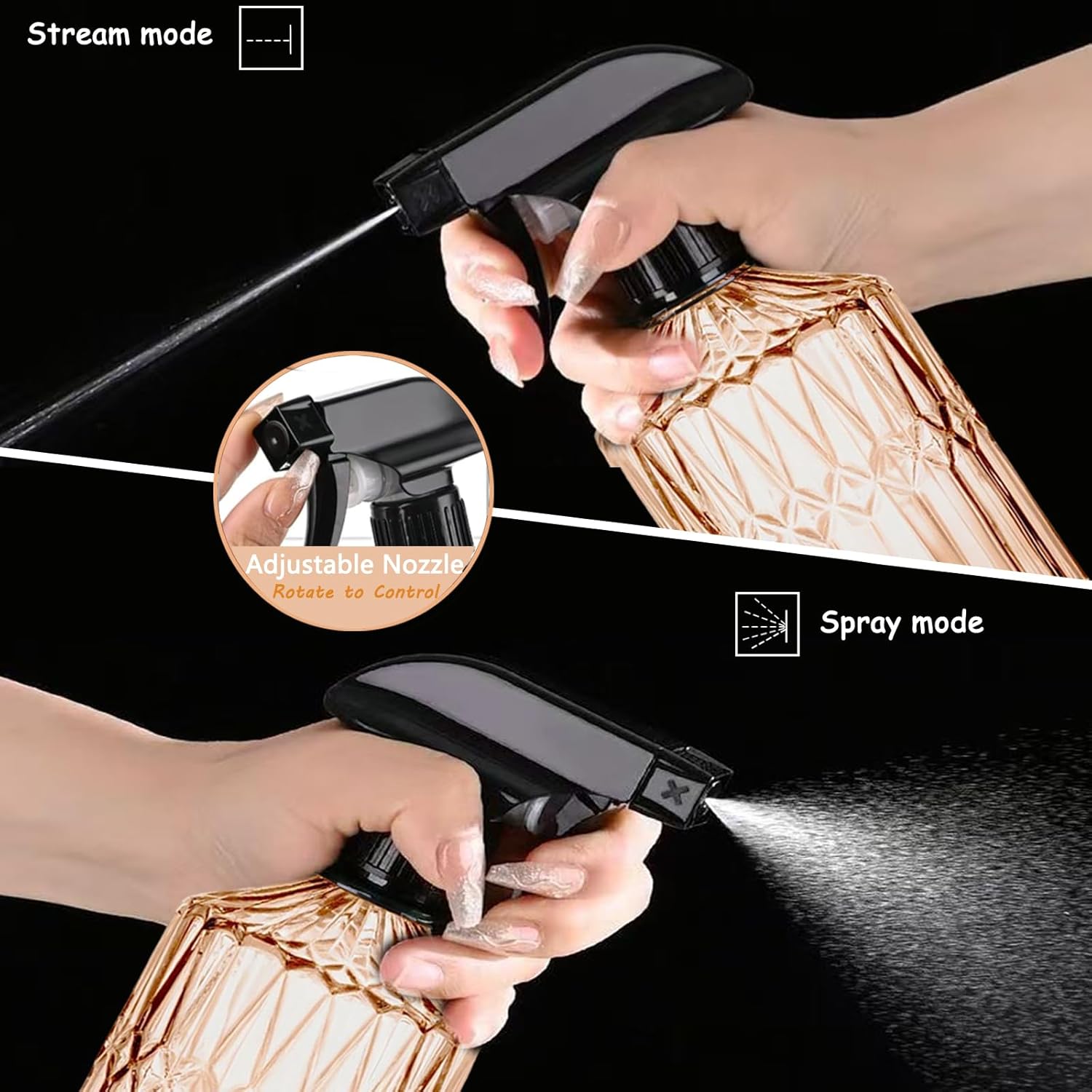 - [360° Adjustable Nozzle for Versatile Spraying] The adjustable 360° nozzle enables effortless control over spray patterns: switch smoothly between fine mist, steady stream, or shut-off.you can choose the sprayer mode accordingly by twisting the nozzle.