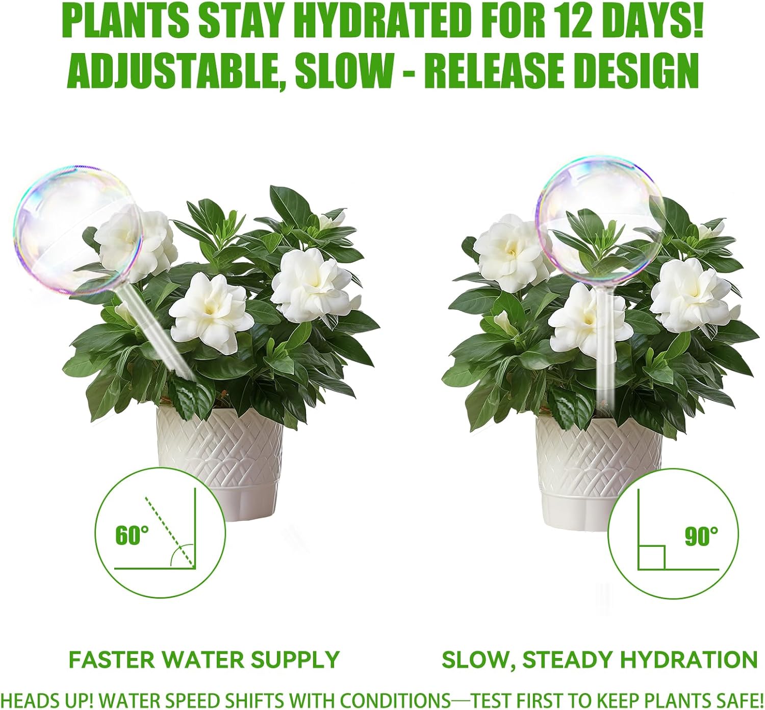 - [Stylish Design, Eye-Catching Appeal] Made with hand-blown rainbow glass, these glass watering globes for plants look just like floating soap bubbles. When sunlight hits them, they throw off dazzling light patterns—blending function and beauty to make your plants stand out. These practical Iridescent Self Watering Globes for outdoor plants are total pros at watering plants while away, so you get both a useful tool and a pretty accent for your space.