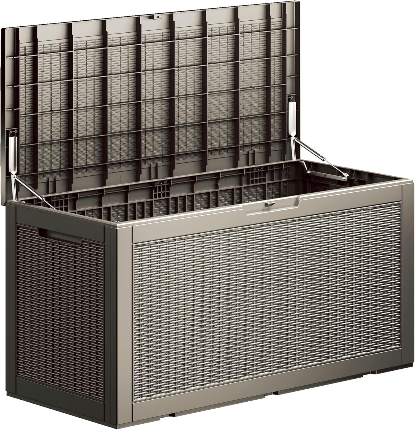 100 Gallon Deck Box, Resin Outdoor Indoor Waterproof Storage Box, Lockable Storage Box With Handle for Patio Furniture - Garden Tools - Swimming Pool Tools UV-Resistant, Brown