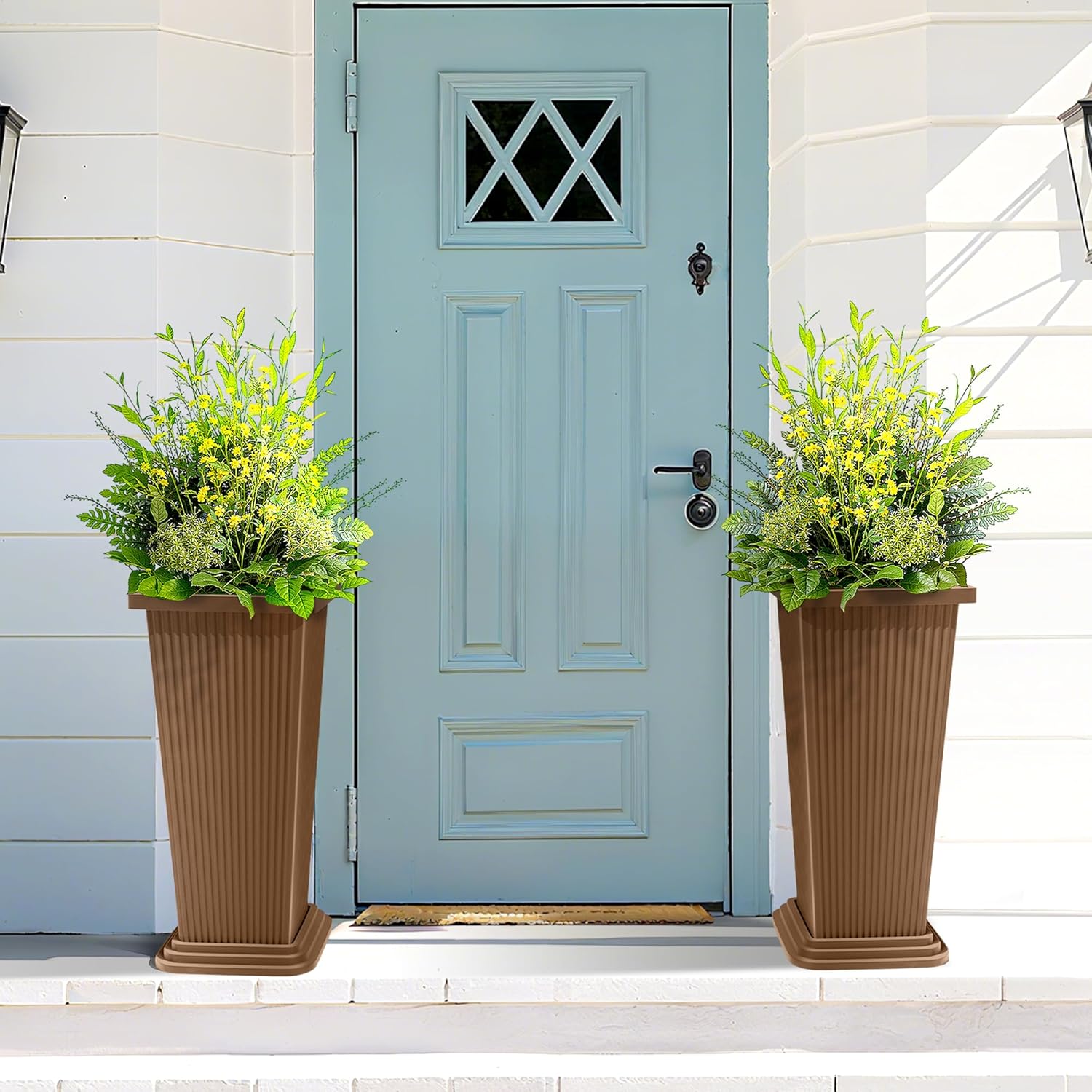 - Smart Drainage with Bonus Tray System: Each tall outdoor planter includes a custom-fit drainage tray to promote proper water flow and air circulation, helping to prevent root rot and keep your plants healthy. This makes these planters a great solution for your porch, patio, or any indoor space.