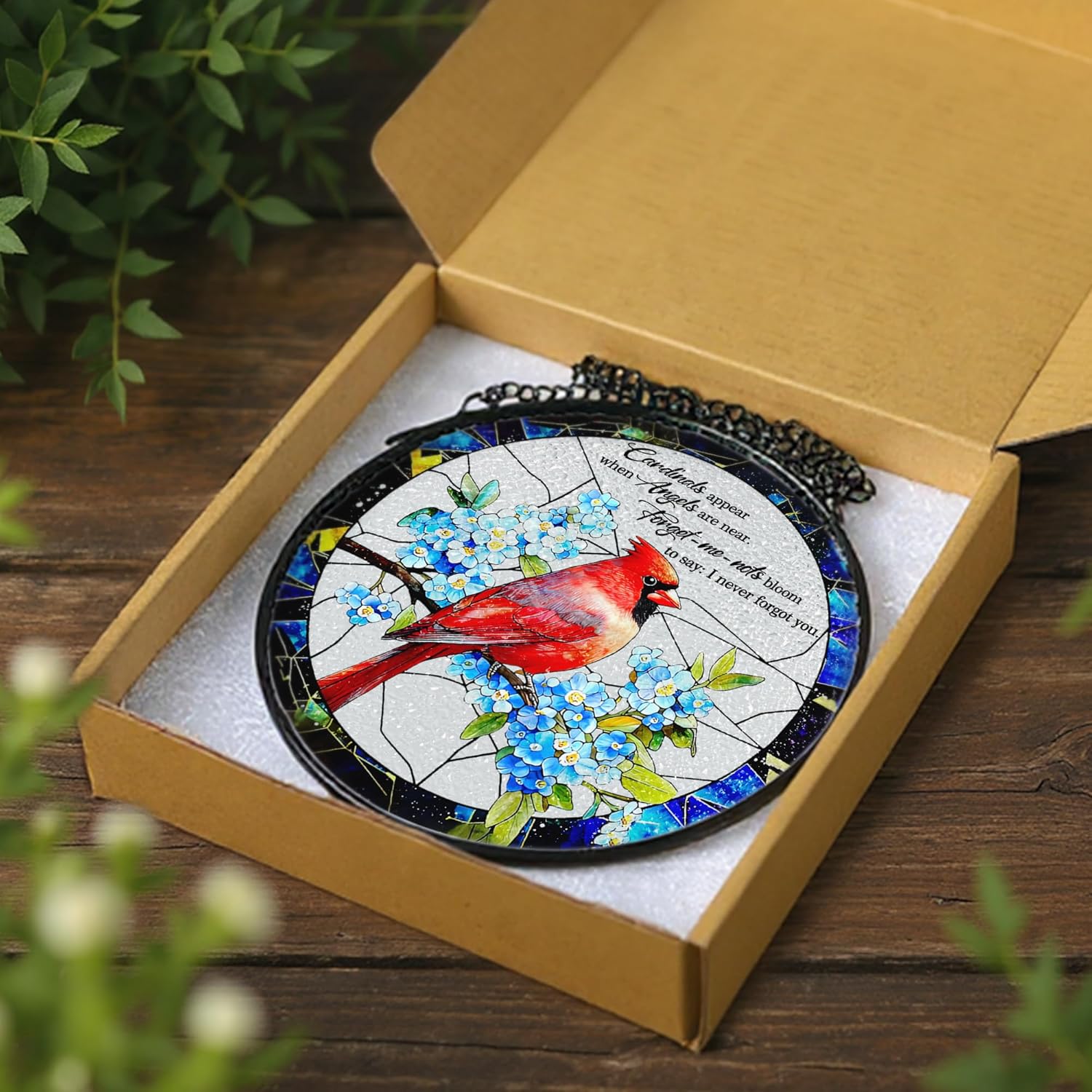 Cardinal Stained Glass Window Hanging, 8 Inch Sun Catchers Indoor Window, Suncatchers for Windows Hanging, Home Decor and Memorial Gift, Sympathy Gift, Cardinal Gifts, in Memory of Loved One Gifts