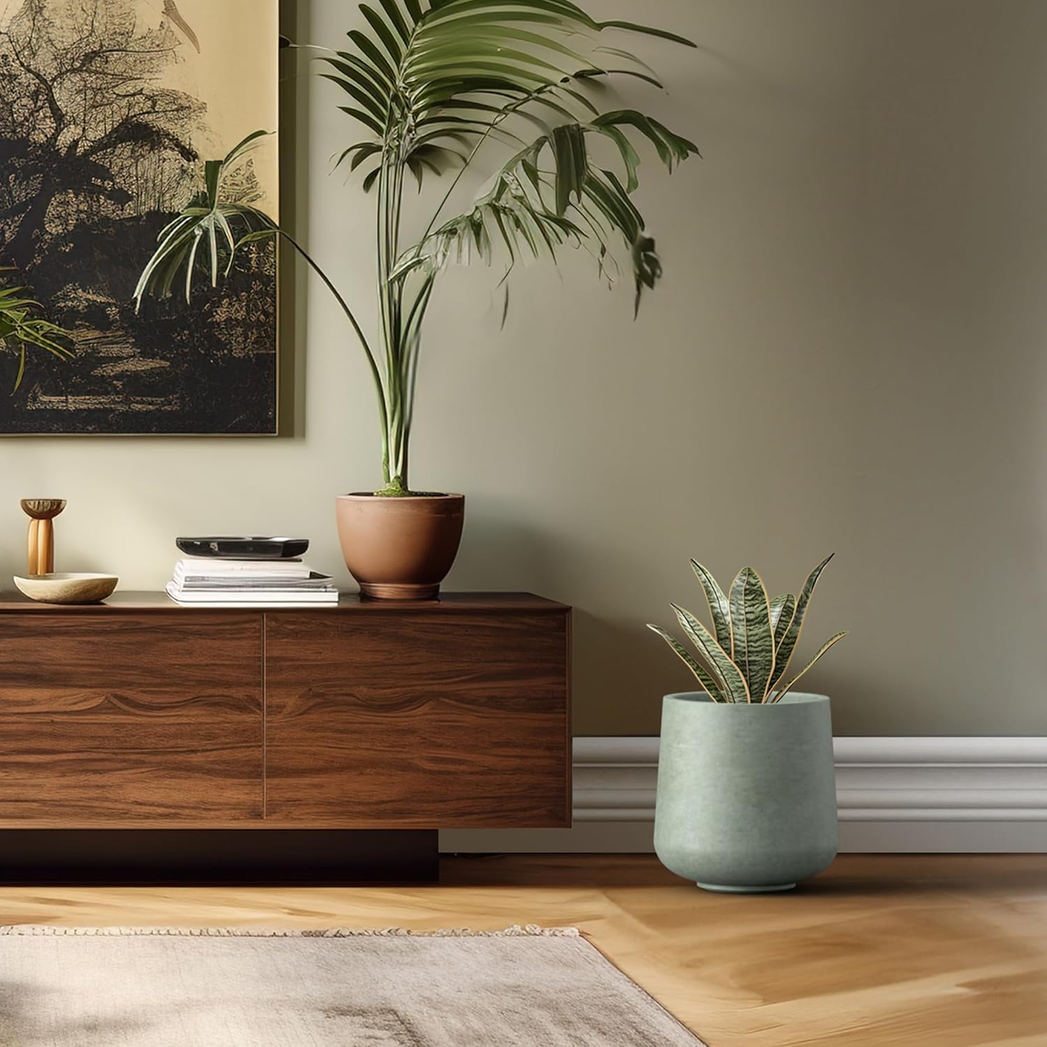 Kante 11.6" Dia Round Concrete Planter, Outdoor Indoor Large Plant Pots Containers with Drainage Hole and Rubber Plug for Home Garden Patio, Mint Green