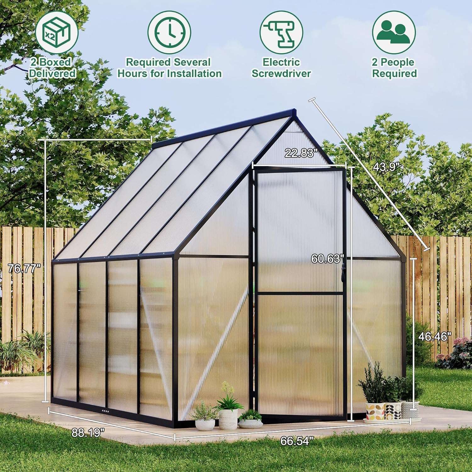 Greenhouse 6x7 FT Aluminum-Framed Heavy Duty Polycarbonate with Quick Setup Structure and Roof Vent Large Enhanced Outdoors Green House Kit