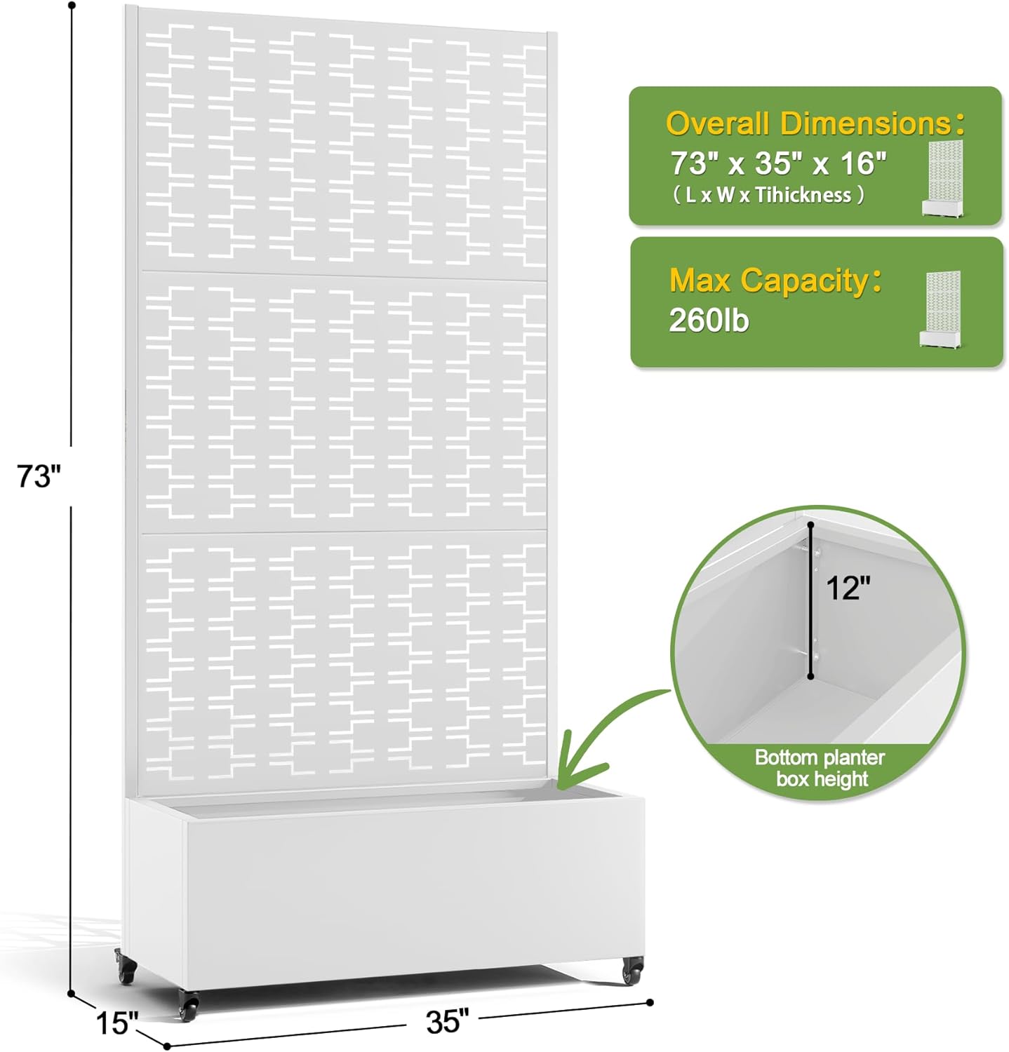 FENCY Metal Raised Garden Bed with Wheels and Trellis,73"x35"x16" Planter Box for Climbing Plants, Vegetables & Vines, Features Privacy Screen and Drainage Holes (White-Brick)