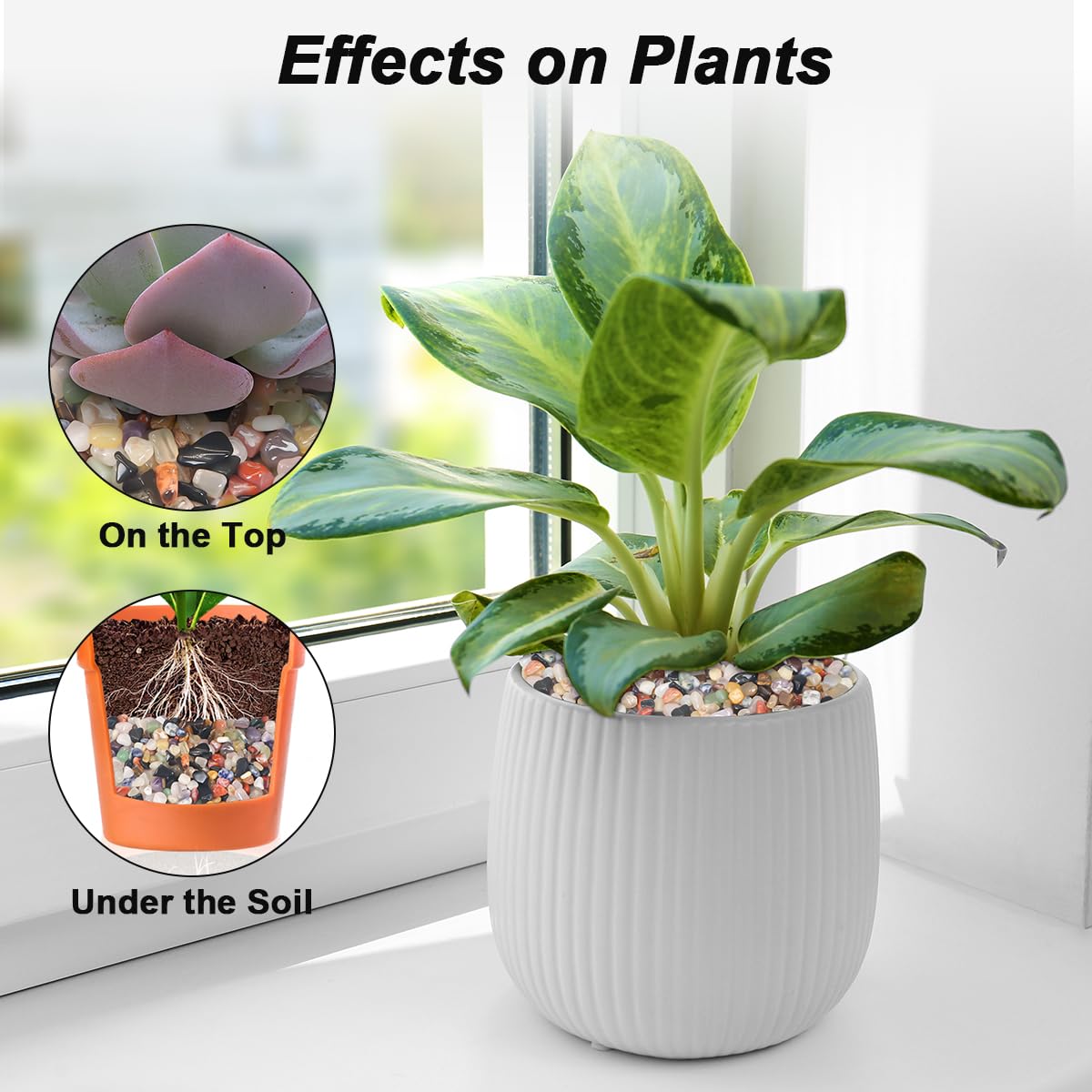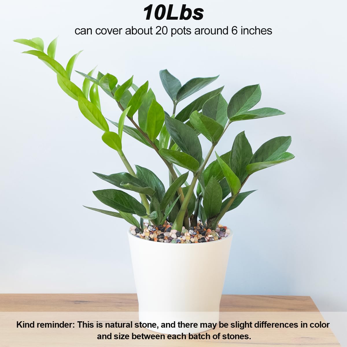 - 【Size and Quantity】The Outdoor/indoor Decorative Stones are packaged into 1 pound and 5 pounds and 10 pounds when they are packed. 1 lbs can cover about 2 pots around 6 inches.5 lbs can cover about 10 pots around 6 inches The size of the Outdoor/indoor Decorative Stones is about 0.4 inch.