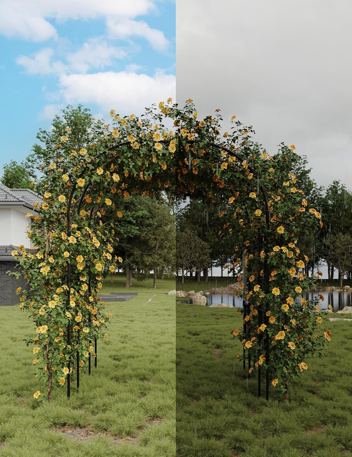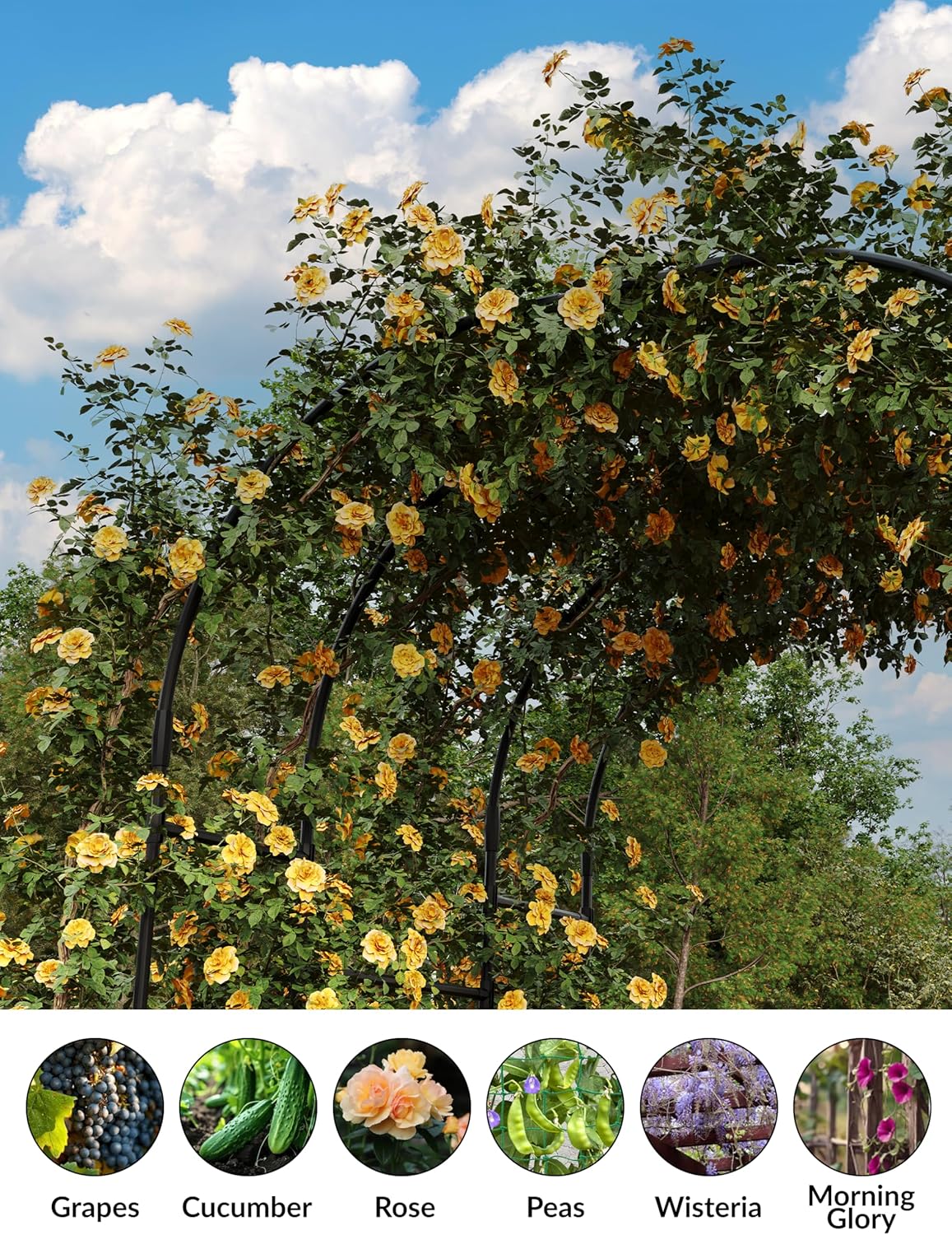 - 【Heavys-Duty Metal Construction】Crafted with thick galvanized steel and textured plastic coating, this garden arch withstands harsh weather while staying cool to the touch. Supports heavy vines like roses, ivy, and clematis for 5+ years.