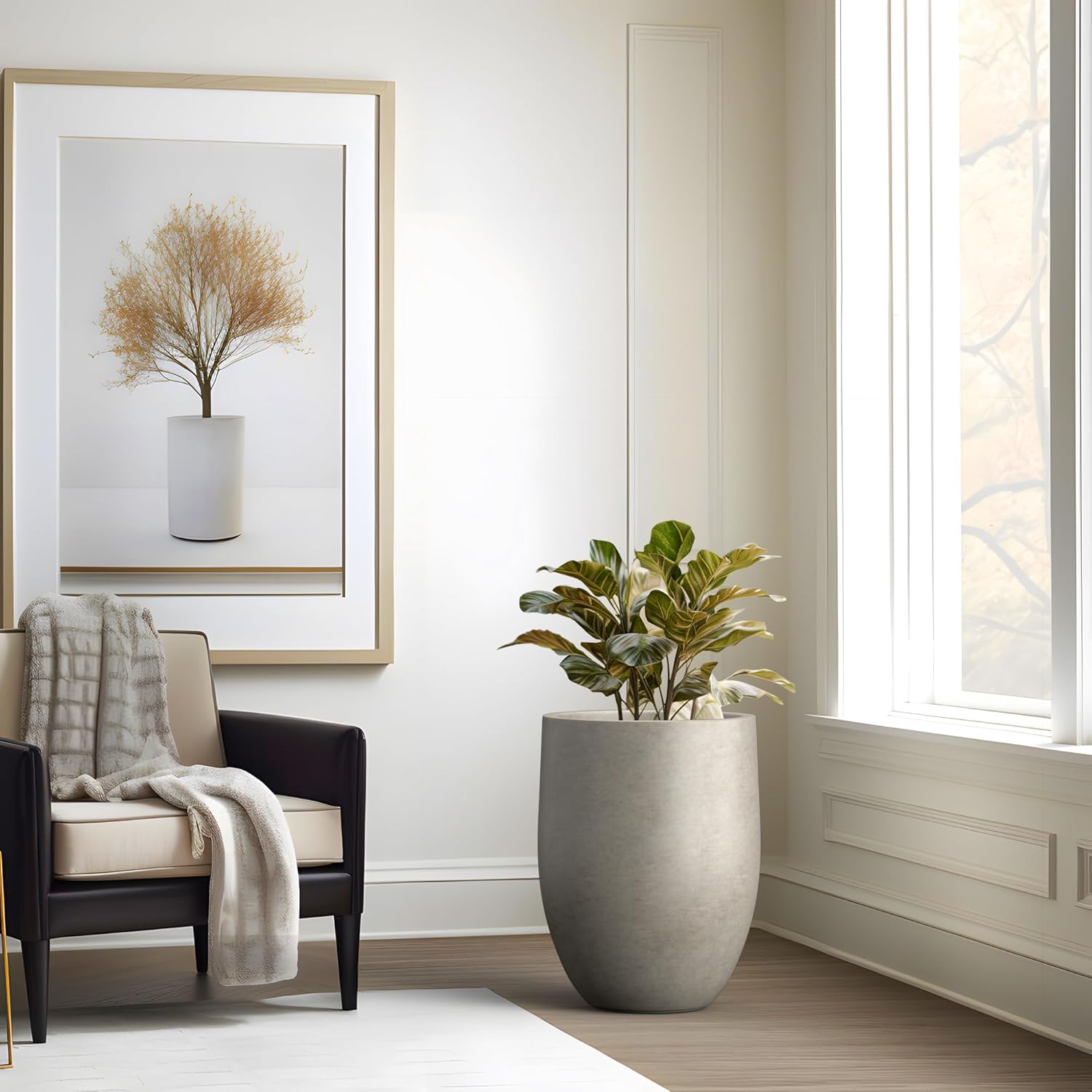 Kante 21.7" H Stone Gray Concrete Tall Planter, Large Decorative Garden Pot with Drainage Hole and Rubber Plug for Outdoor Indoor Plants, Modern Round Style for Home and Garden
